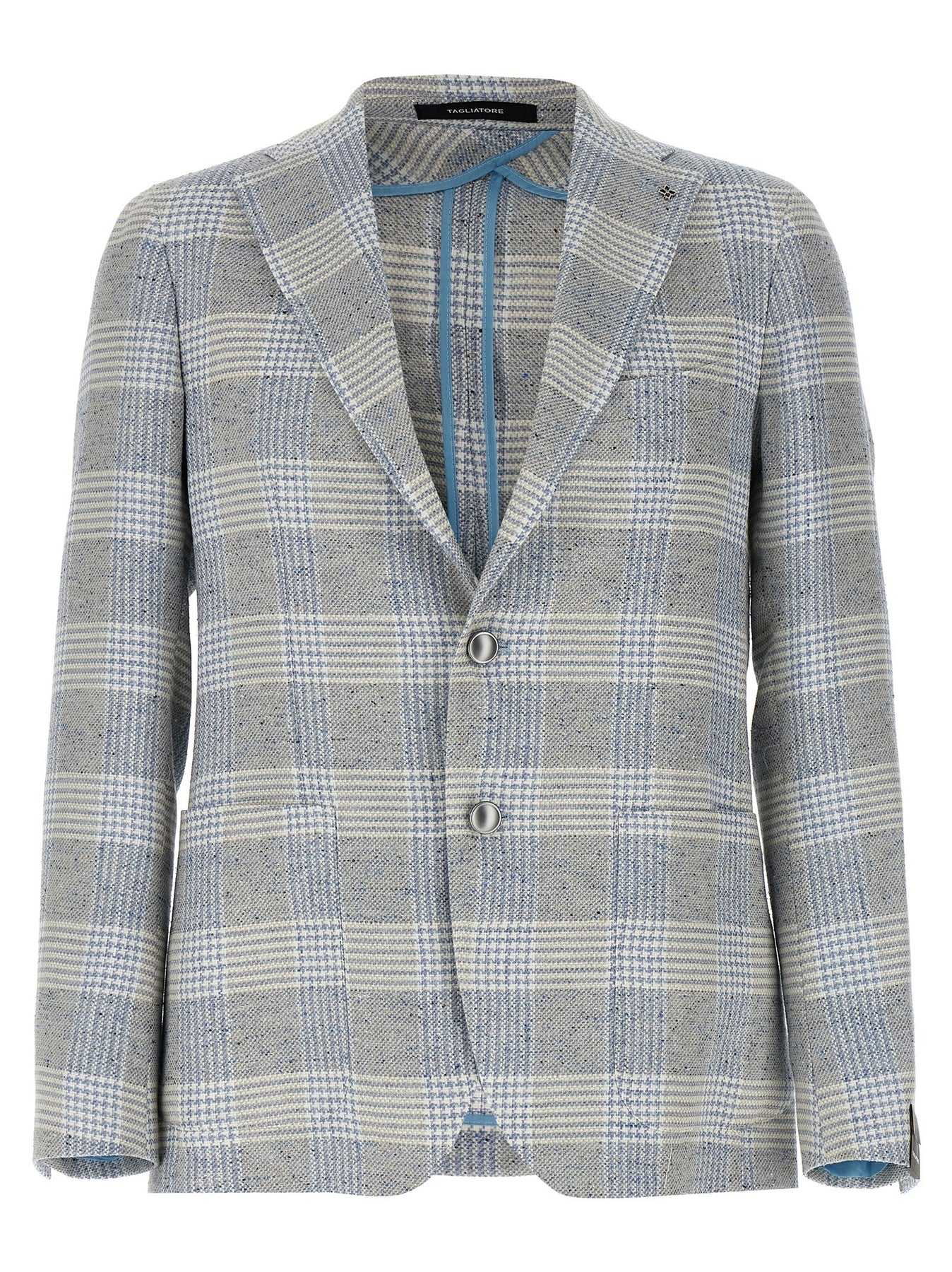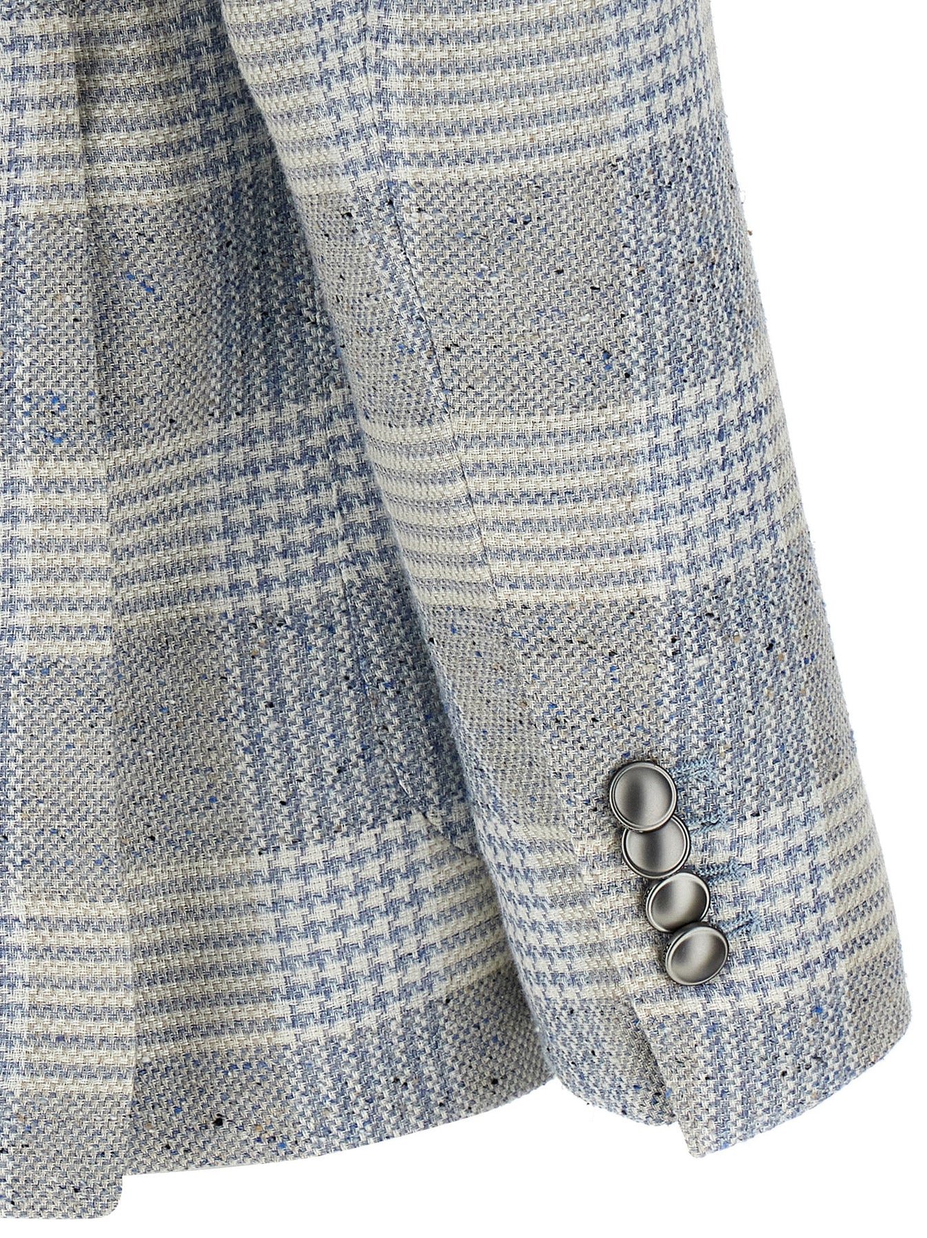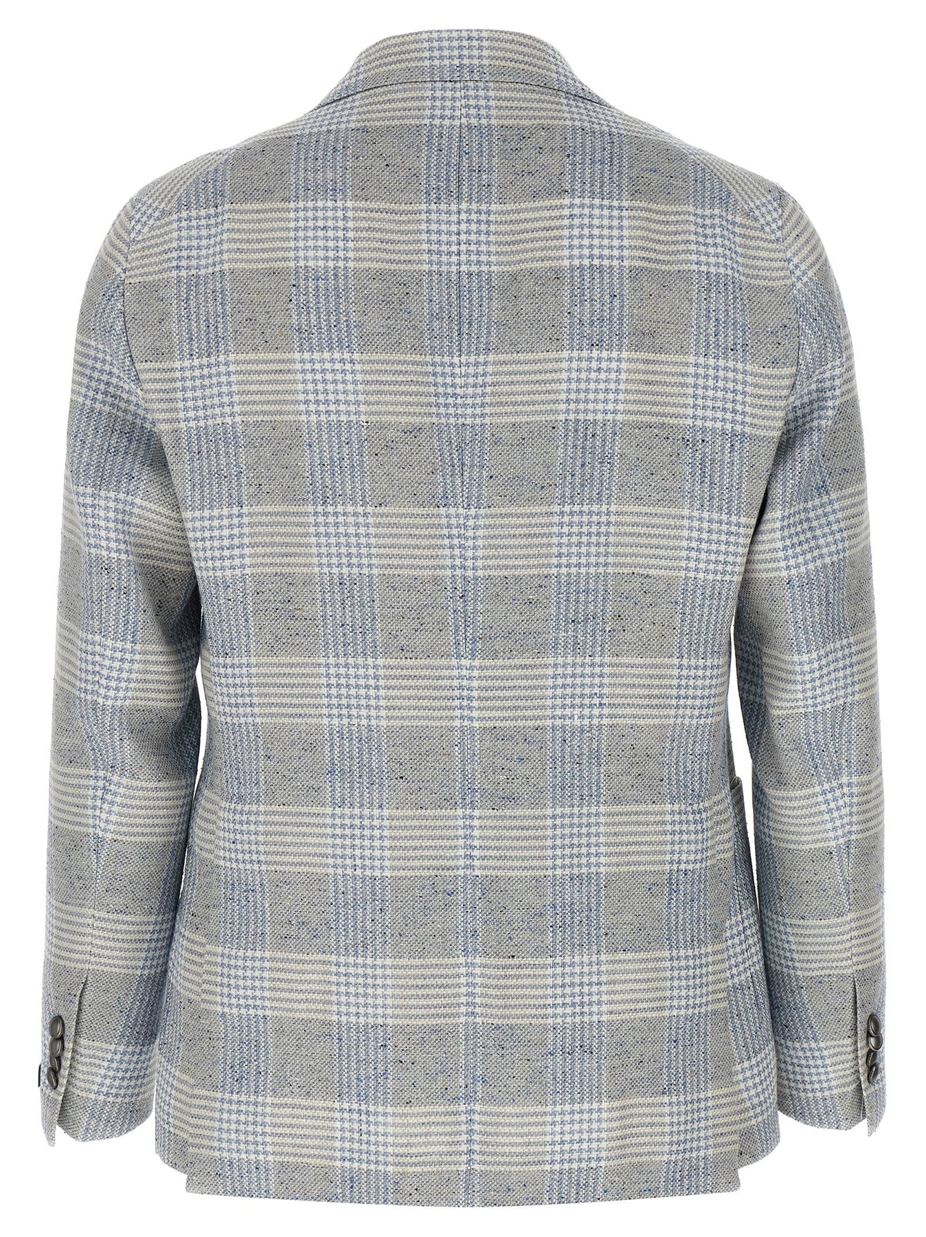 'Montecarlo' single-breasted blazer in linen, silk and wool blend with button closure, pockets, unlined, mirror lapels, removable brooch, long sleeves, back vents.