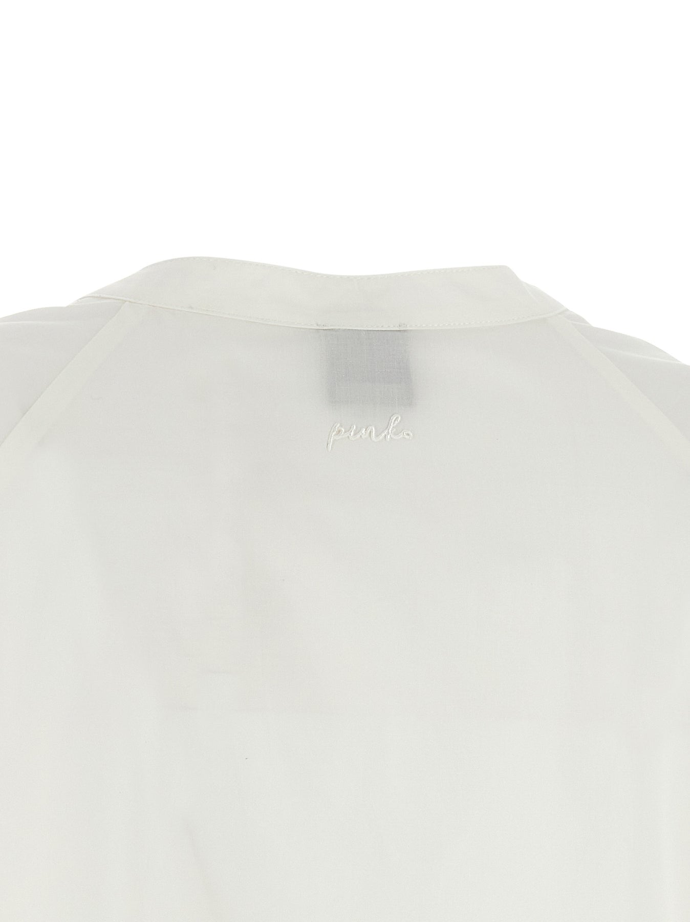 'Apecchio' blouse in light cotton poplin with tone-on-tone logo embroidery at the back, crew neck, front mother-of-pearl button closure, wide armholes, short raglan sleeves with front curls on the seam.