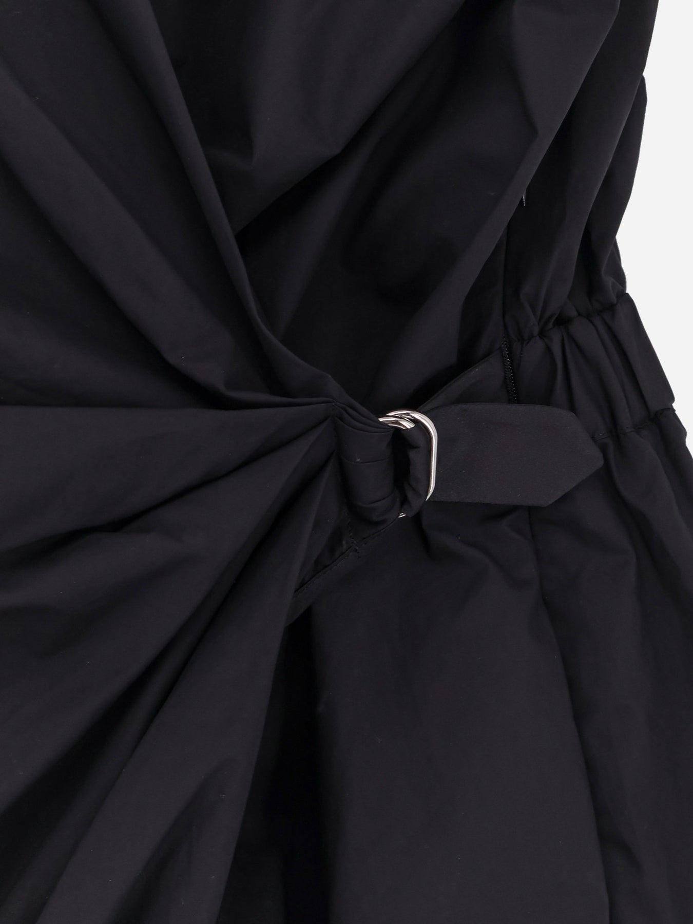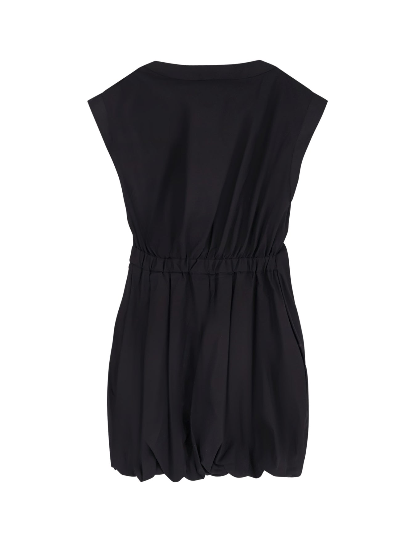 Closure with lateral hidden zip Sleeveless with boat neckline Elastic waistband and adjustable metal buckle Baloon skirt 100% cotton SKU: 105215A2LD_Z99