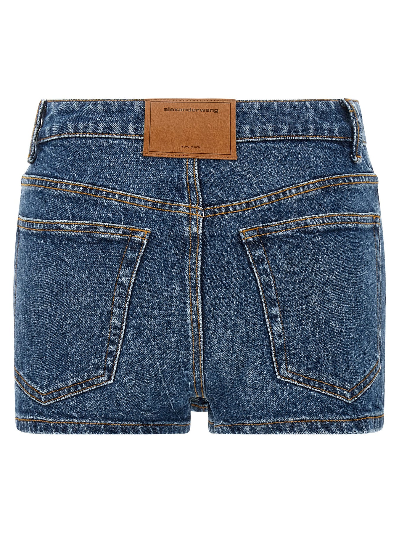 Cotton denim skort, zip and button closure, five pockets, back leather logo tag.
