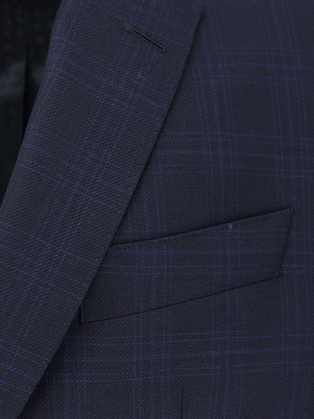 Blazer: Peak lapels Two flap pockets on the front and one breast pocket Pants: Hook and zip closure Two slant pockets on the front and two buttoned welt pockets on the back 100% wool Lining: 65% viscose 35% polyester SKU: 50528126_404