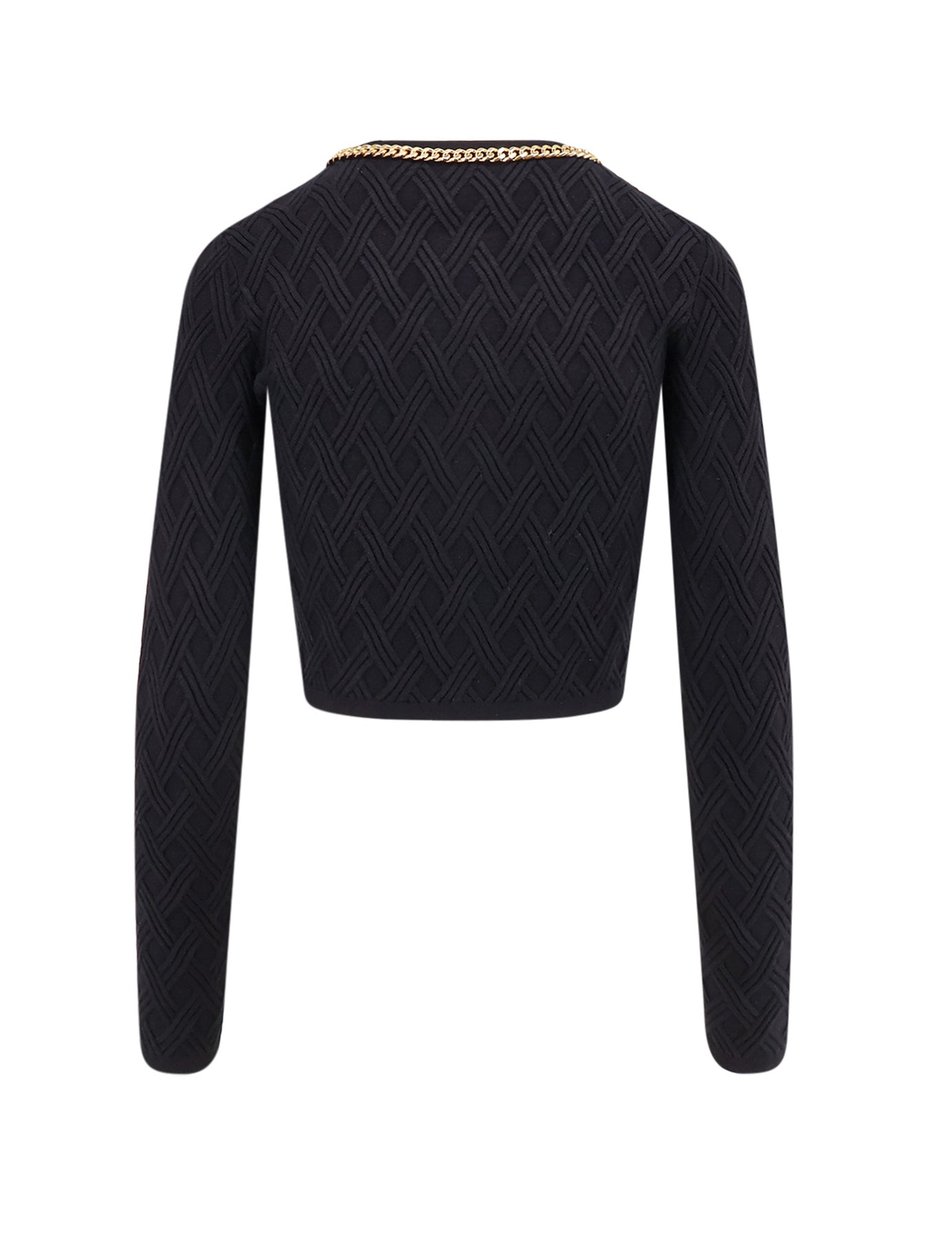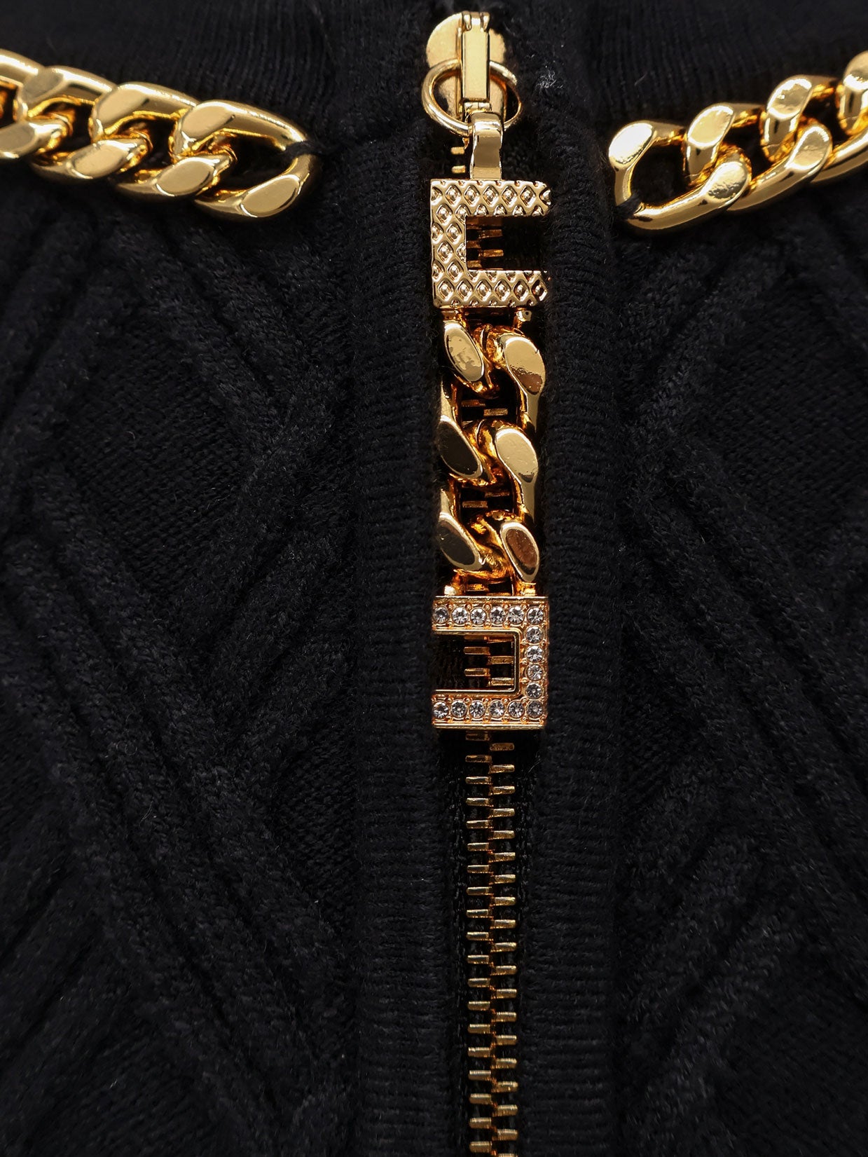 Zip closure Crew-neck with metal detail Long sleeves Crop fit 50% viscose, 28% polyester, 22% polyamide SKU: MK29B56E2110