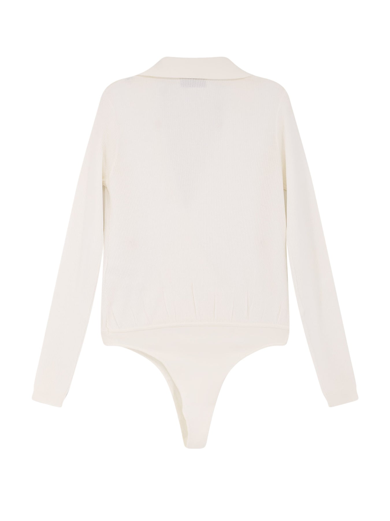 Hook closure at the bottom Deep V-neckline and classic collar Metal chain detail with logo Long sleeves 75% viscose, 15% polyamide, 10% silk SKU: BK75B56E2360