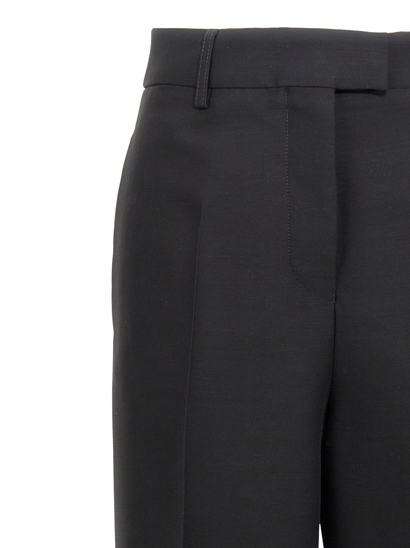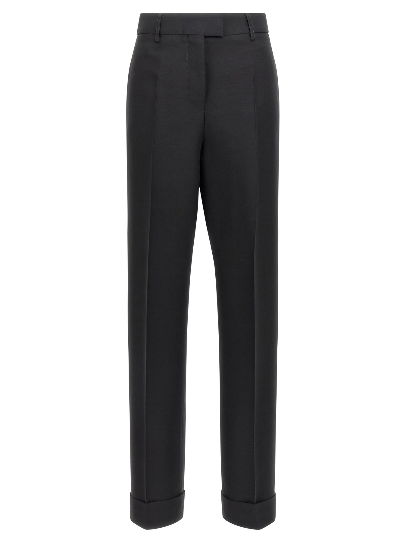 Viscose and virgin wool blend trousers, straight leg with stretched crease, turn-up on the leg bottom, hook and button zip closure, pockets.