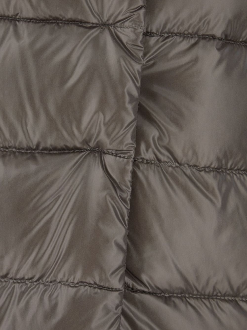 grey cotton blend and goose down dark grey concealed front fastening two side slit pockets high neck long sleeves