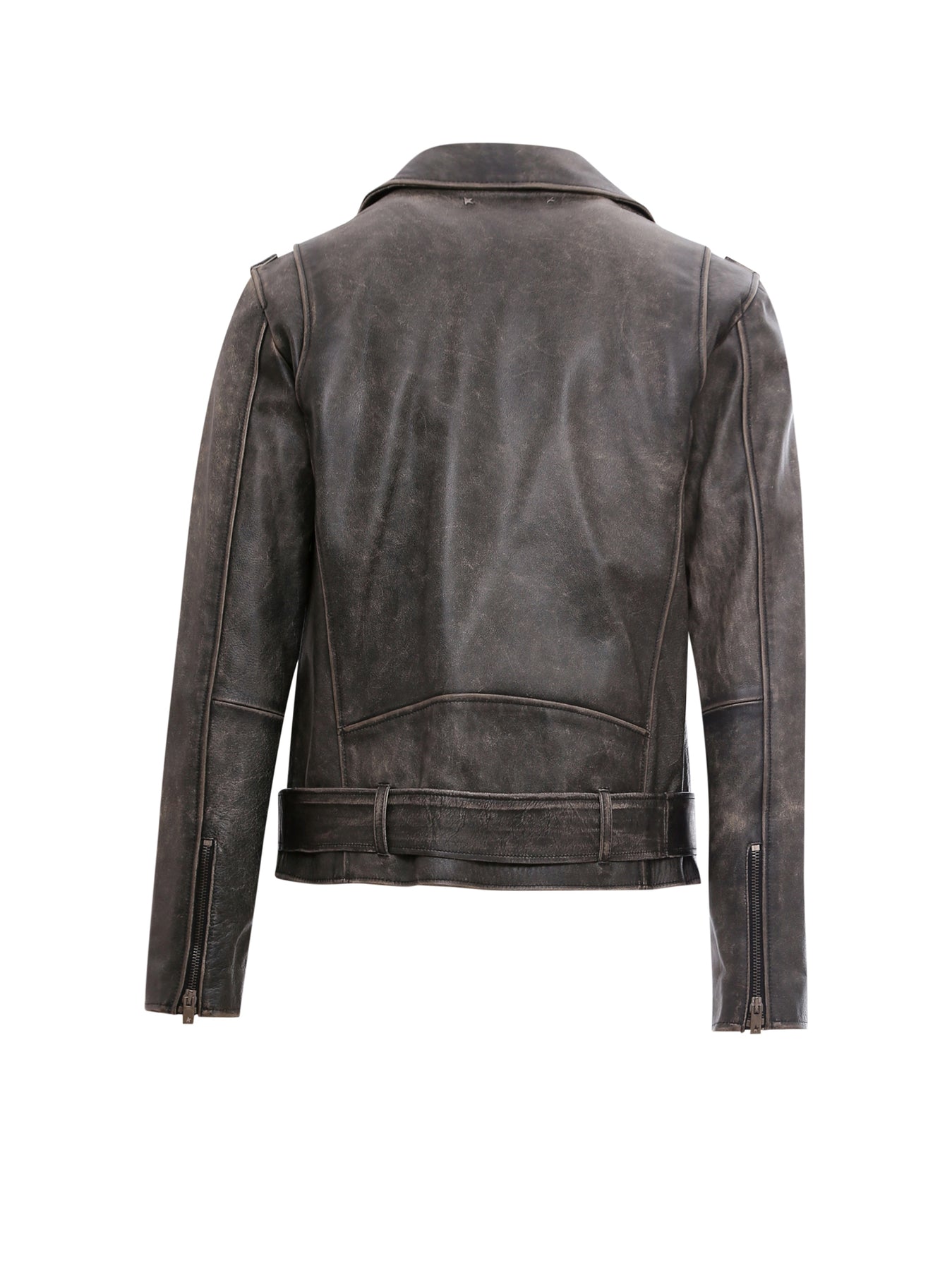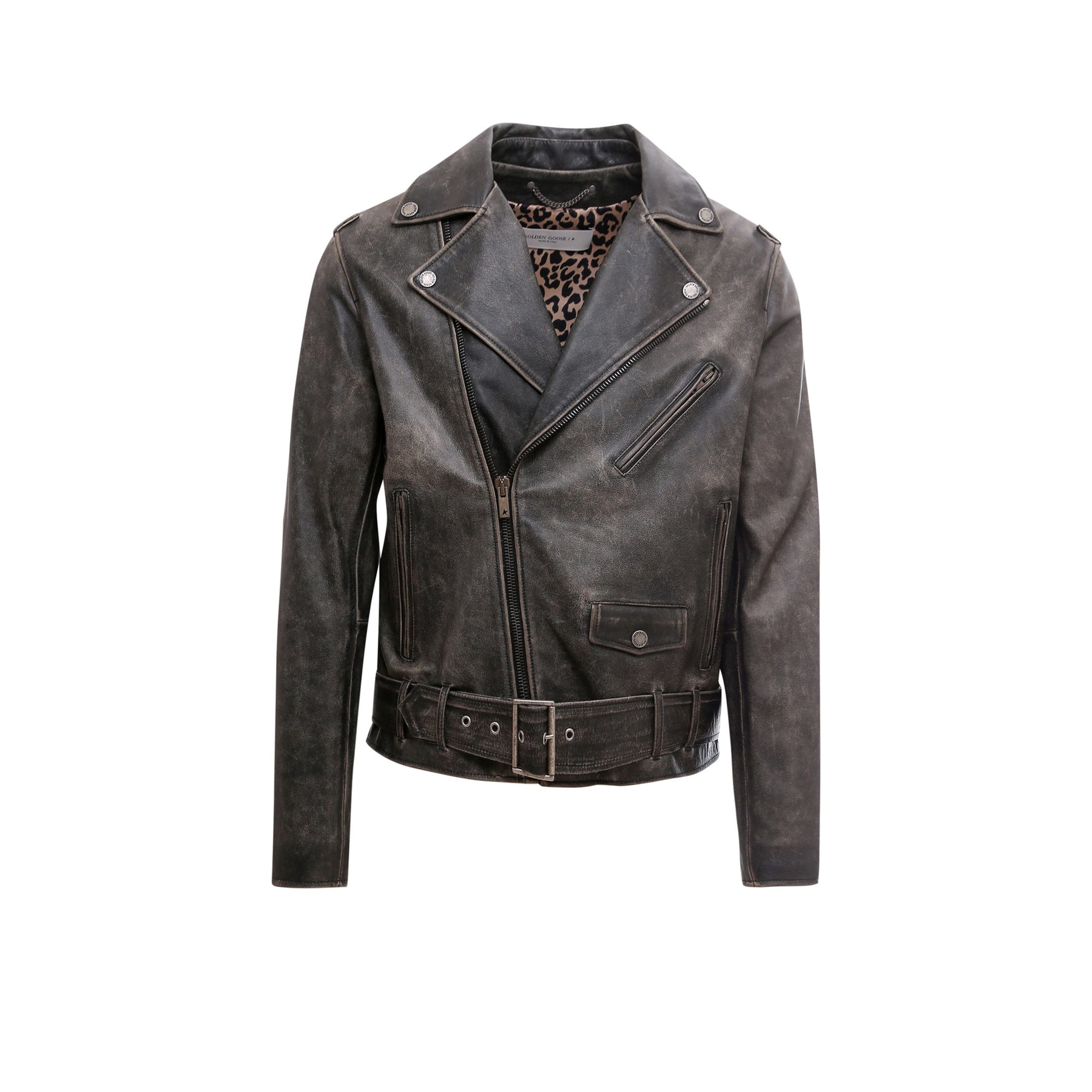 Used effect Asymmetrical zip closure Leather belt with metal buckle Three front zip pockets Made in Italy Leather Animal print polyester lining SKU: GMP00297P00064790100