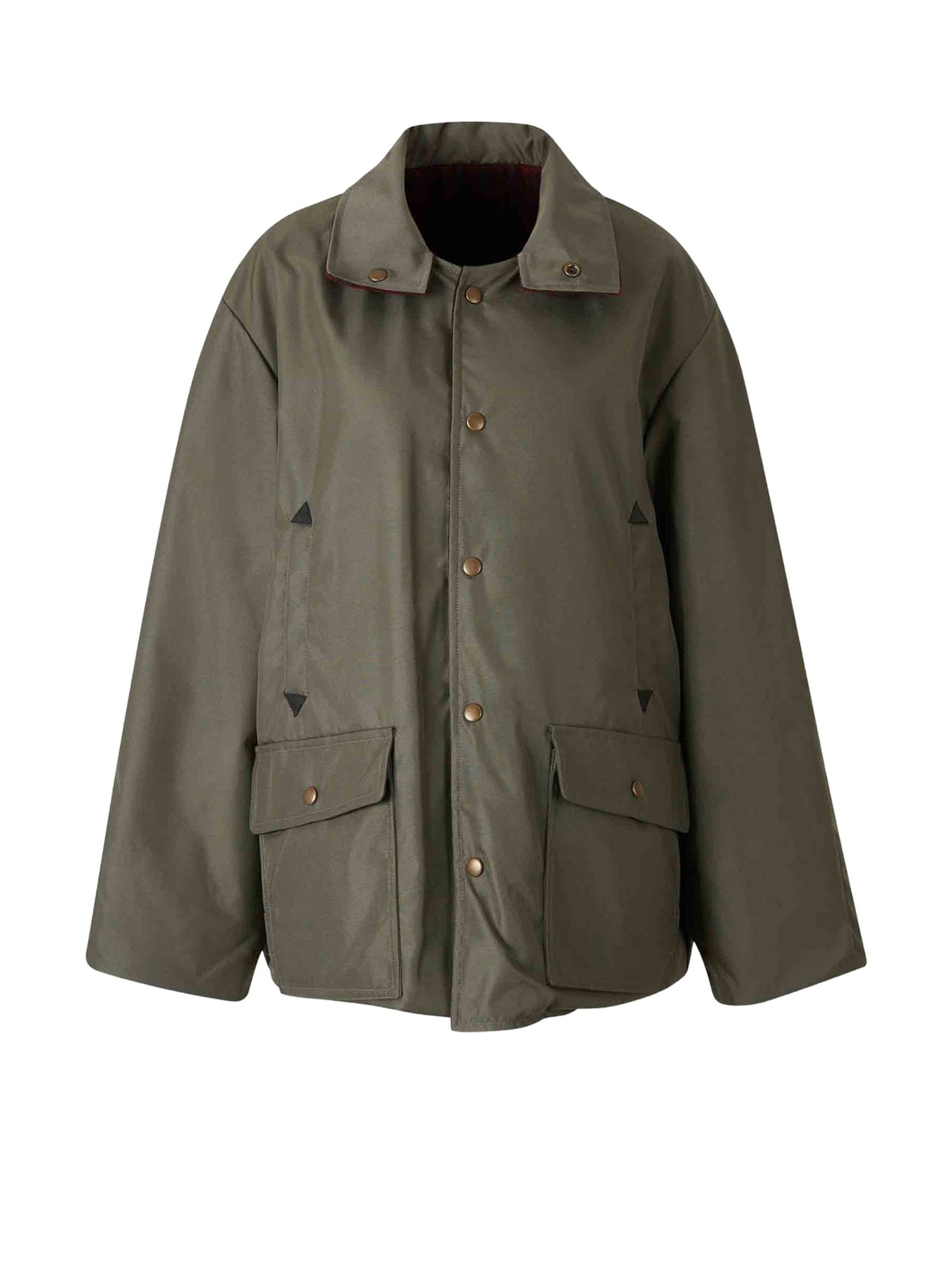 Snap button closure Two vertical pockets with leather details Two flap pockets with buttons Madras pattern virgin wool lining Made in Italy 100% polyamide SKU: S51AM0506MTN088703