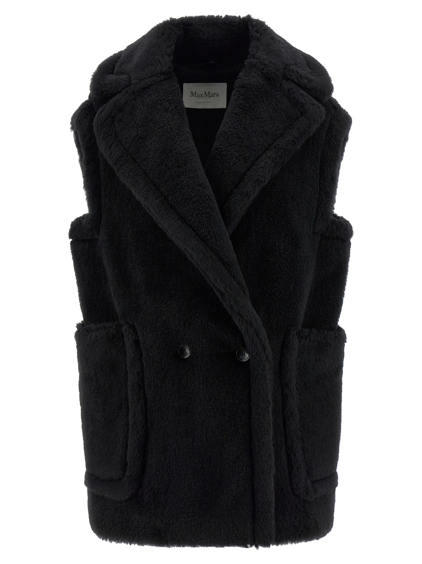 'Bormida1234' vest in alpaca and wool Teddy fabric on a silk base, double-breasted model with front button closure, maxi lapel collar, pockets, Monogram jacquard stretch fabric lining.