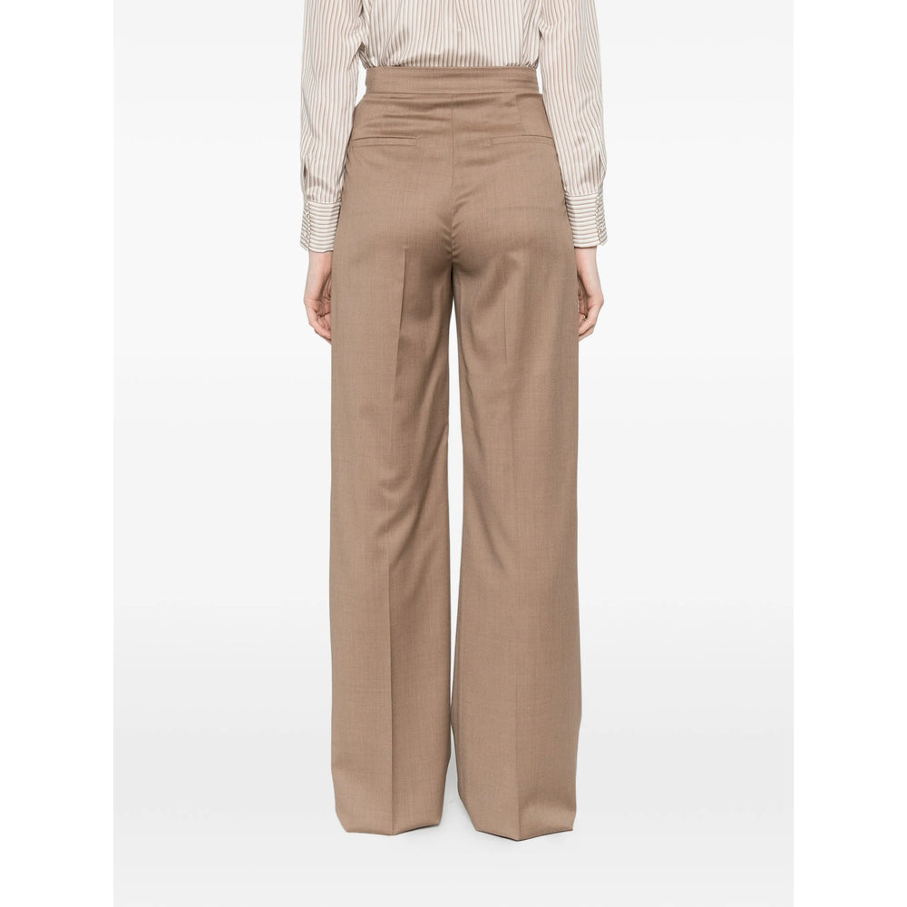 light brown pleated design side seam pockets straight leg belt loops concealed front fastening
