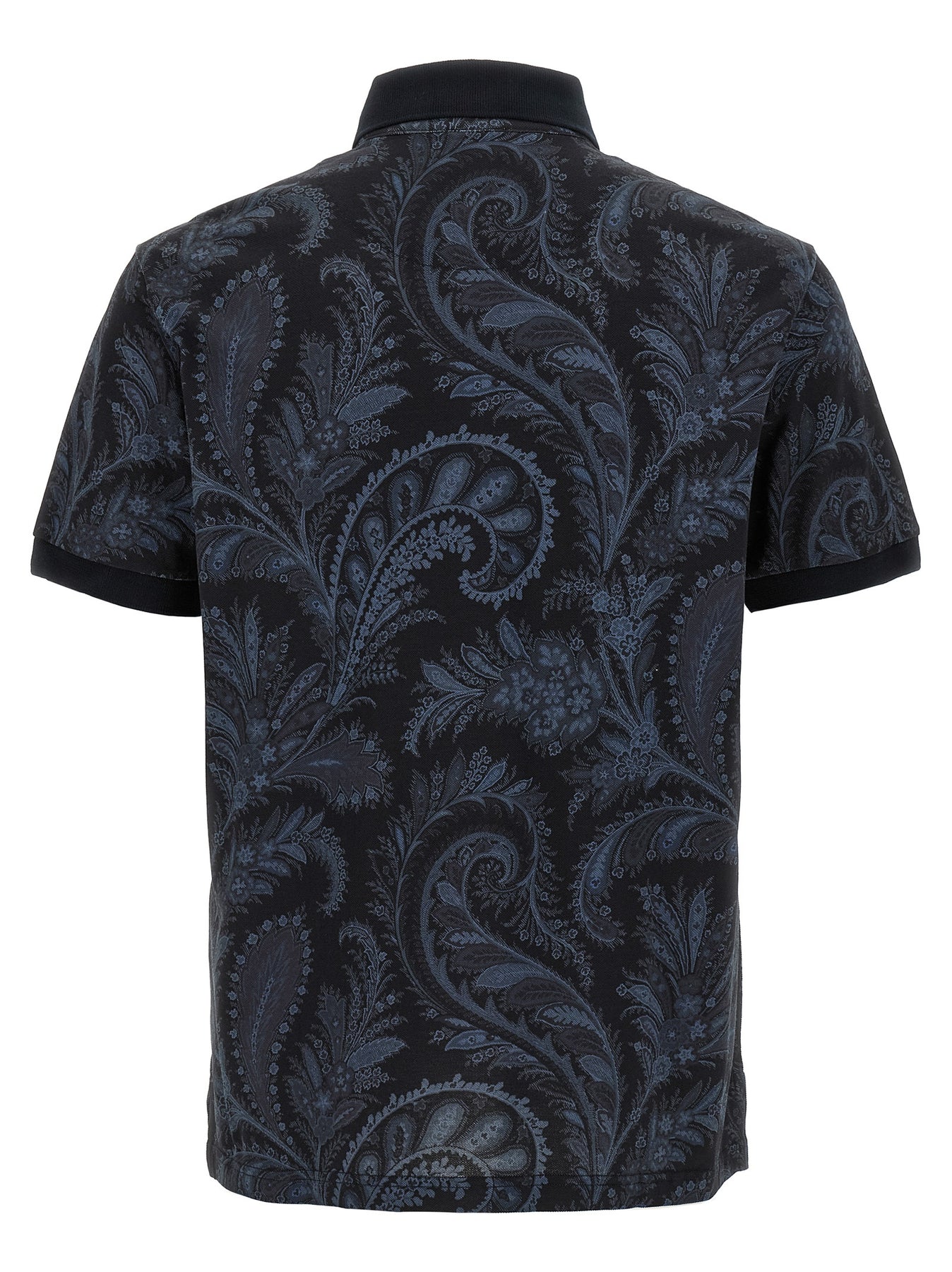 Piqué cotton polo shirt with all-over maxi flower Paisley print and solid color details, tone-on-tone logo embroidery on the front, collar and buttons, short sleeves, side splits.