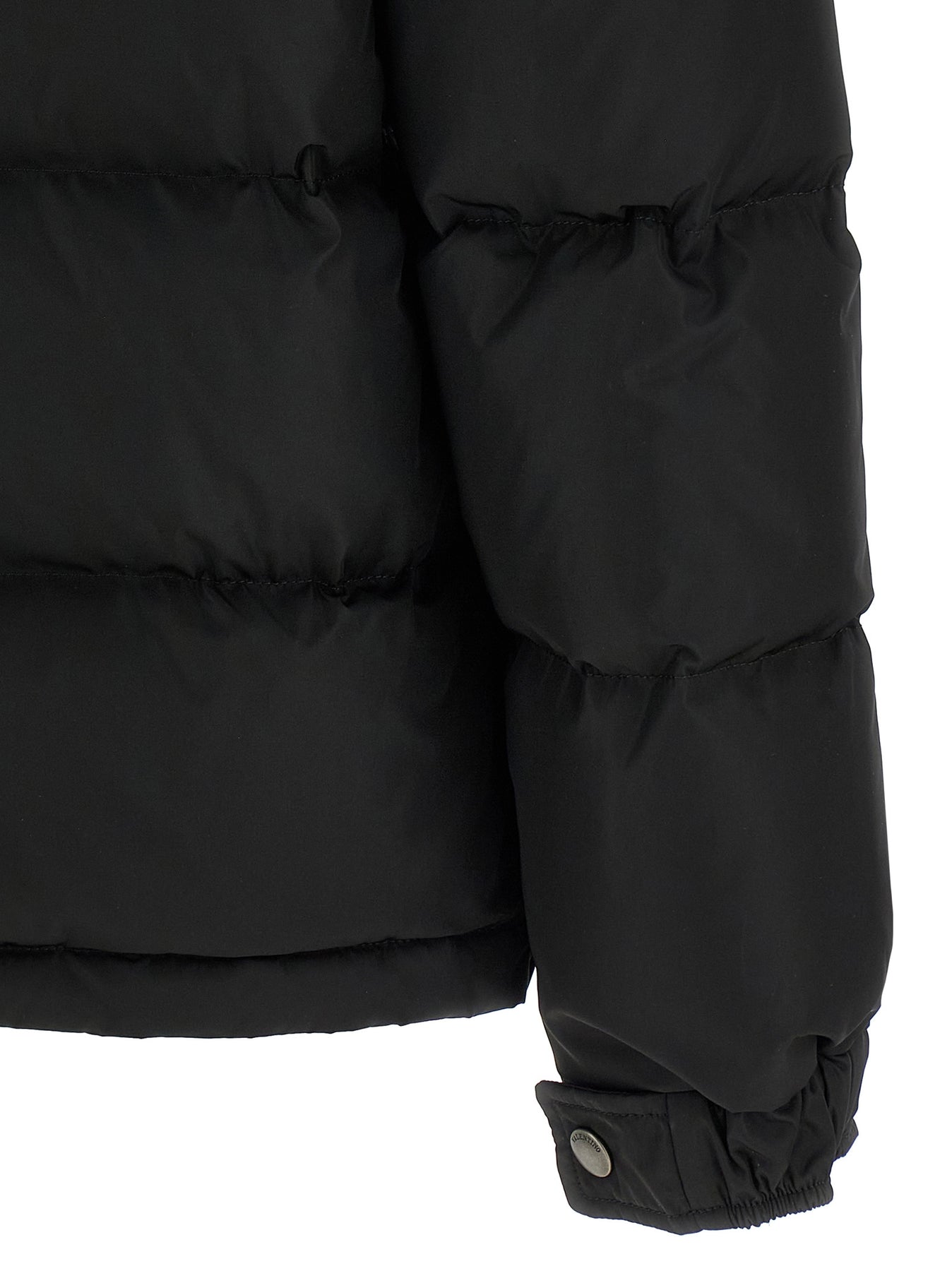 Padded 'VLogo Signature' down jacket, zip closure, removable hood, front metal logo patch, pockets, long sleeves with adjustable cuffs with button.