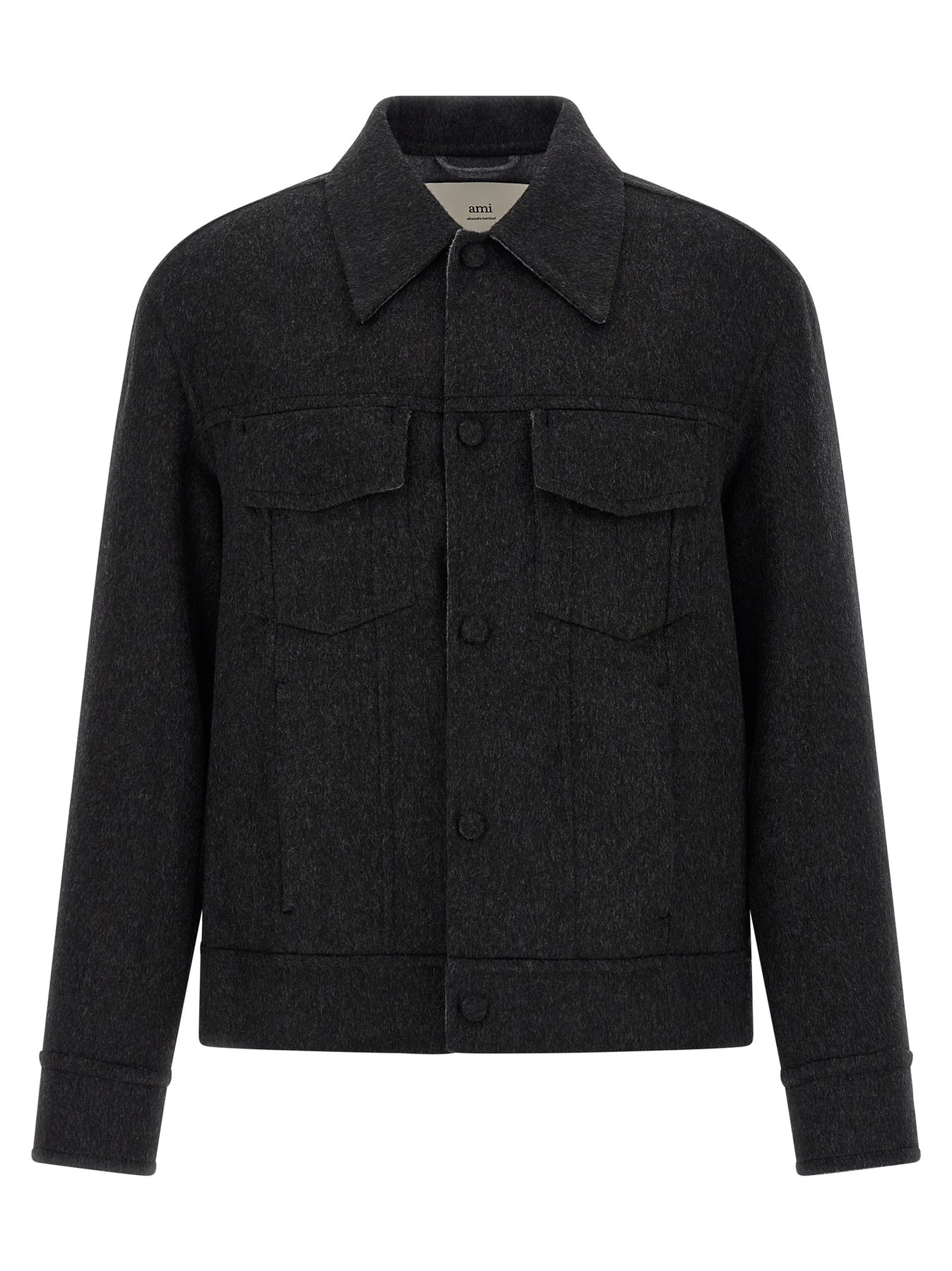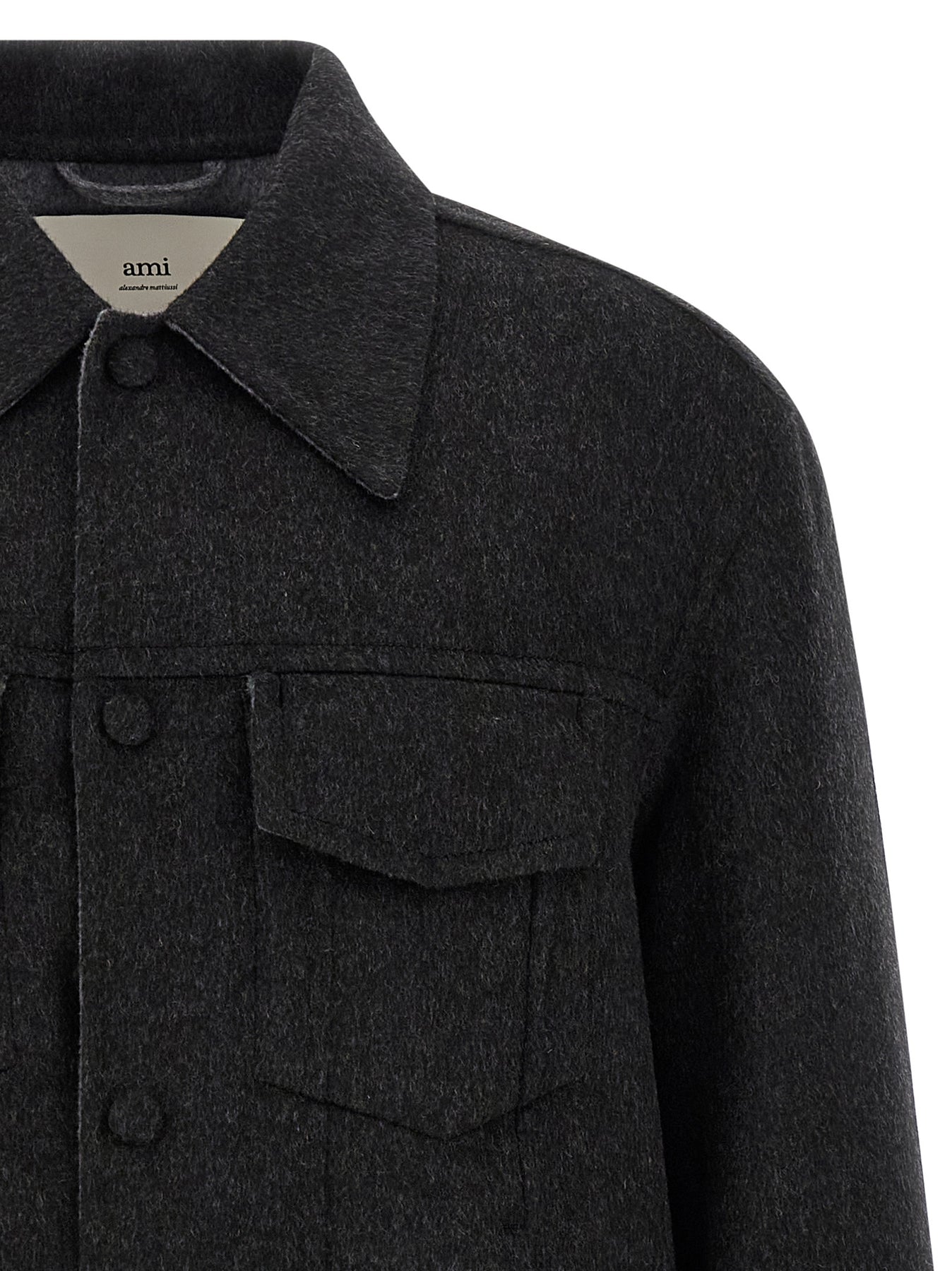 Ami Paris Lenci Cloth Overshirt Puffer Jackets - Gray | 1deb1fc036be069b67daa134dd68ab89f097a4bd