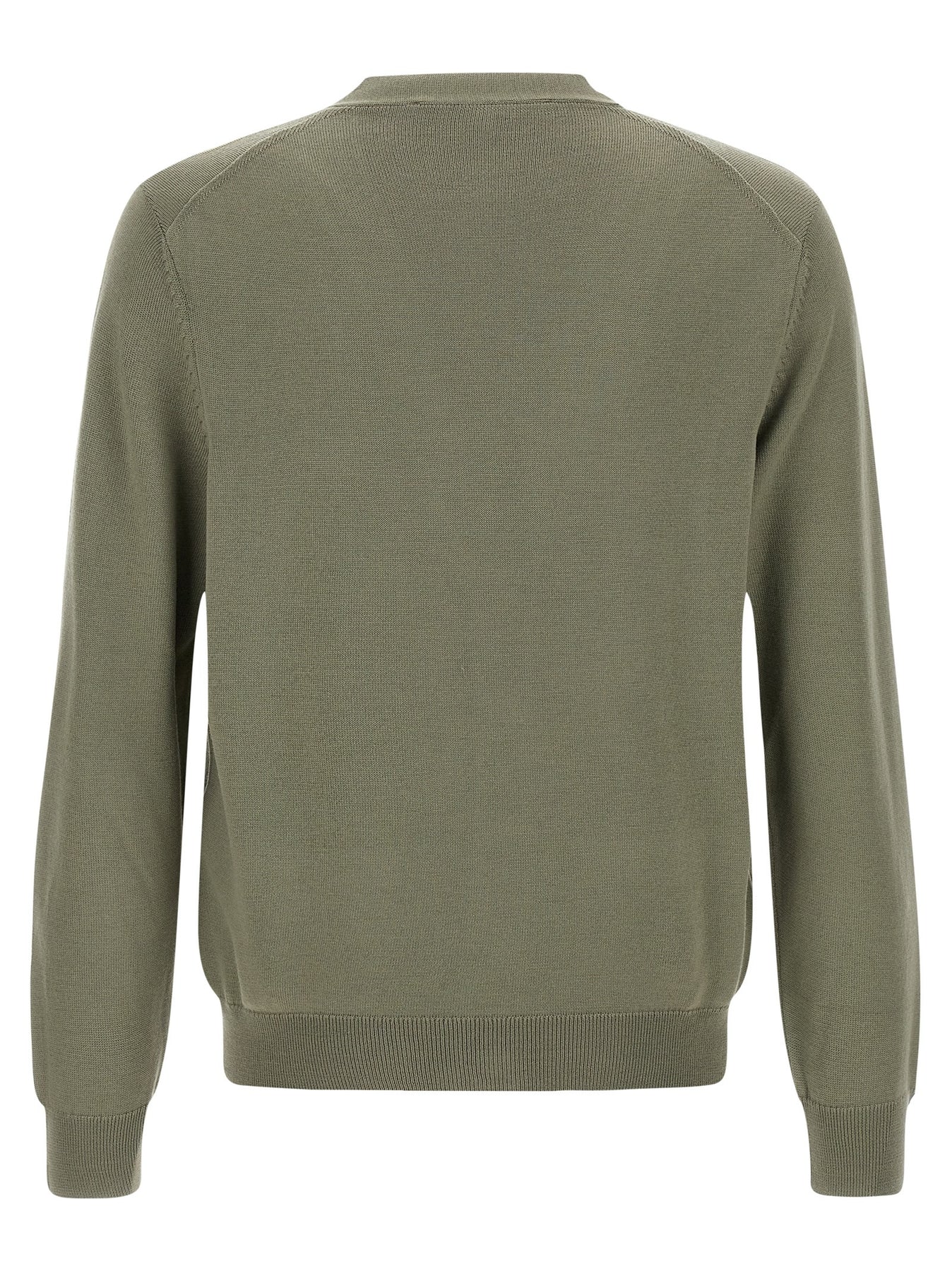 Extrafine merino wool cardigan, 'Fox Head' patch and front button closure, V-neck, pockets, long cuffed sleeves.
