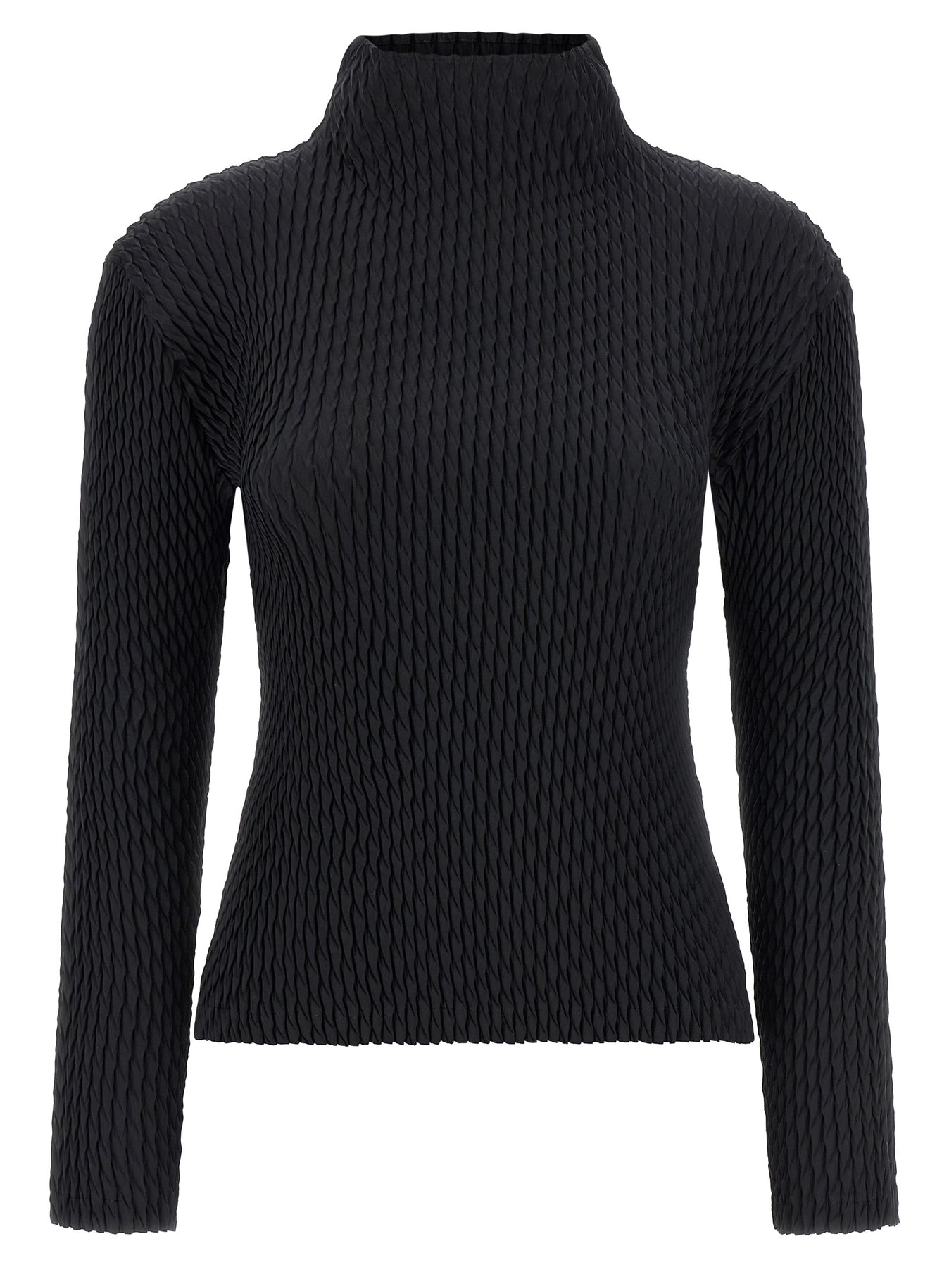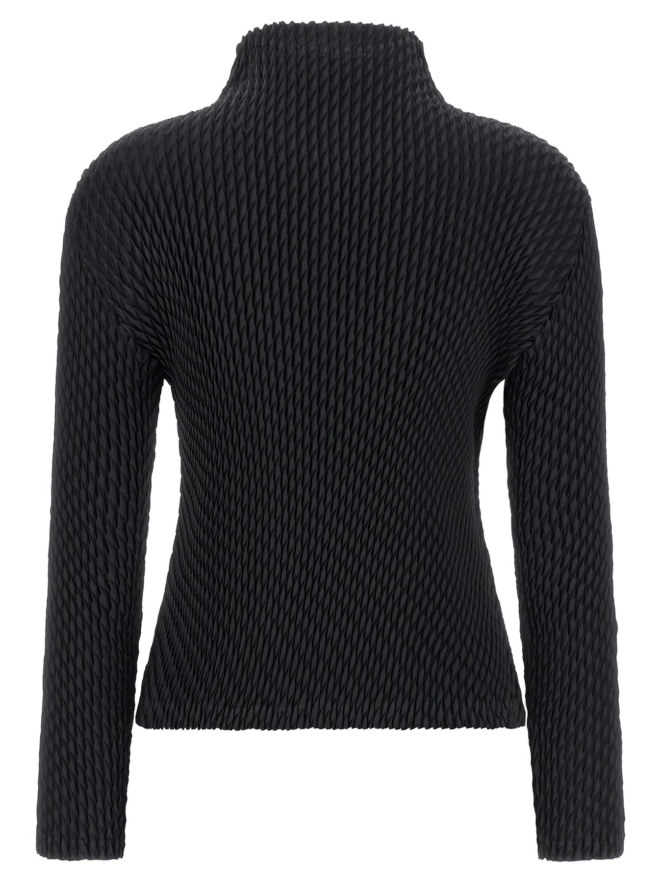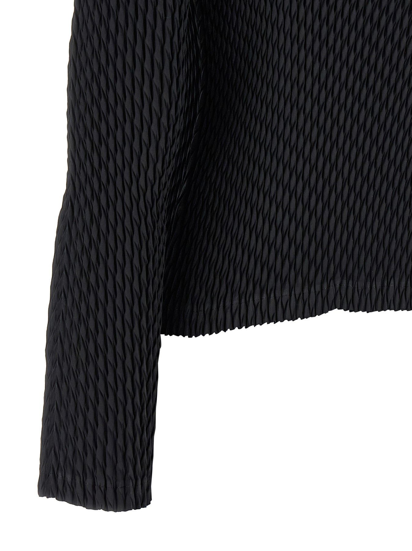 'Sleek Pleats' pleated sweater with crew neck and long sleeves.