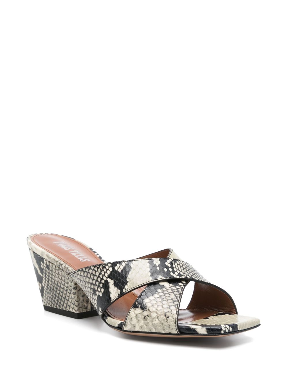 black branded leather insole high block heel crossover strap at the toe square open toe