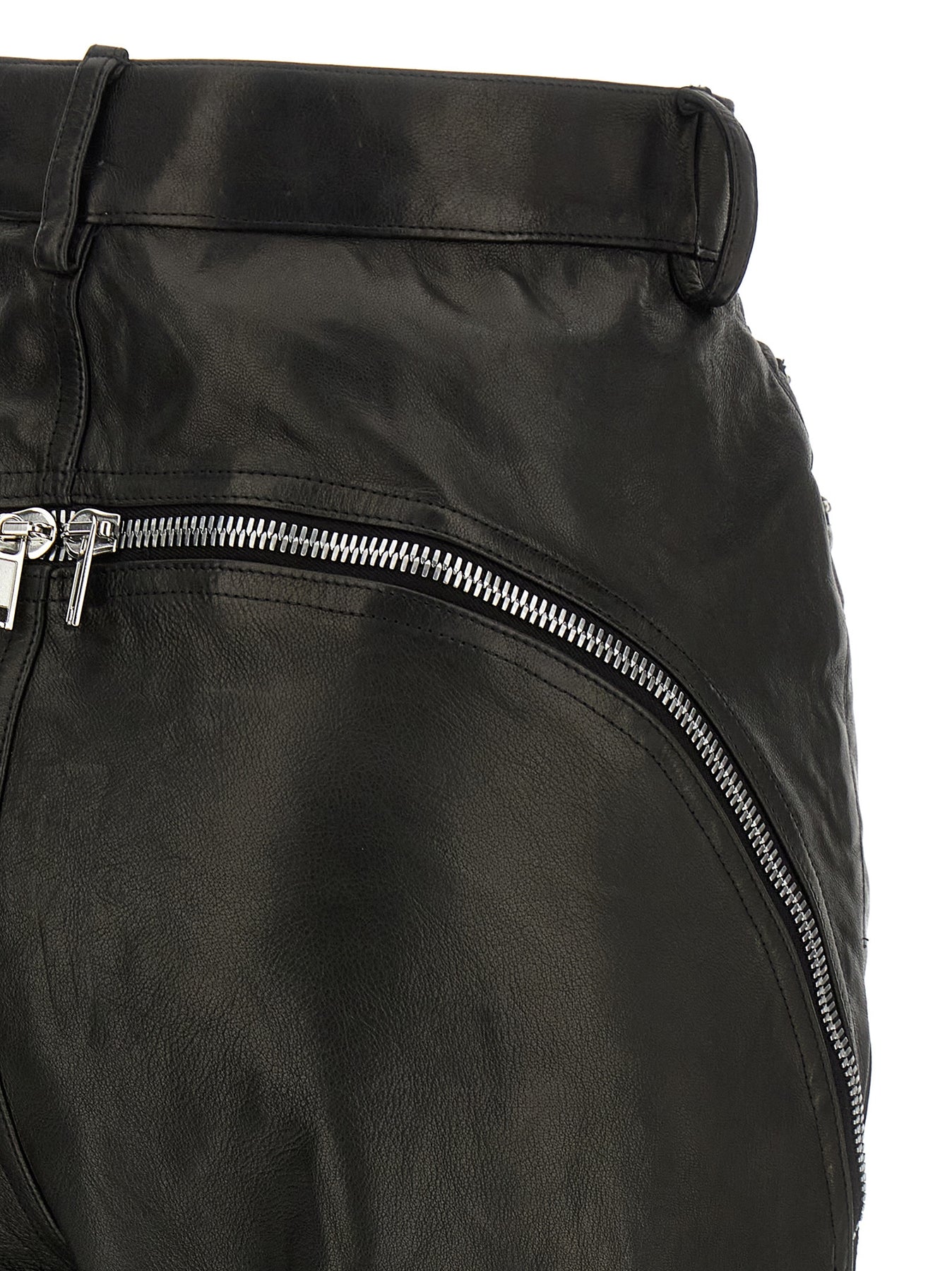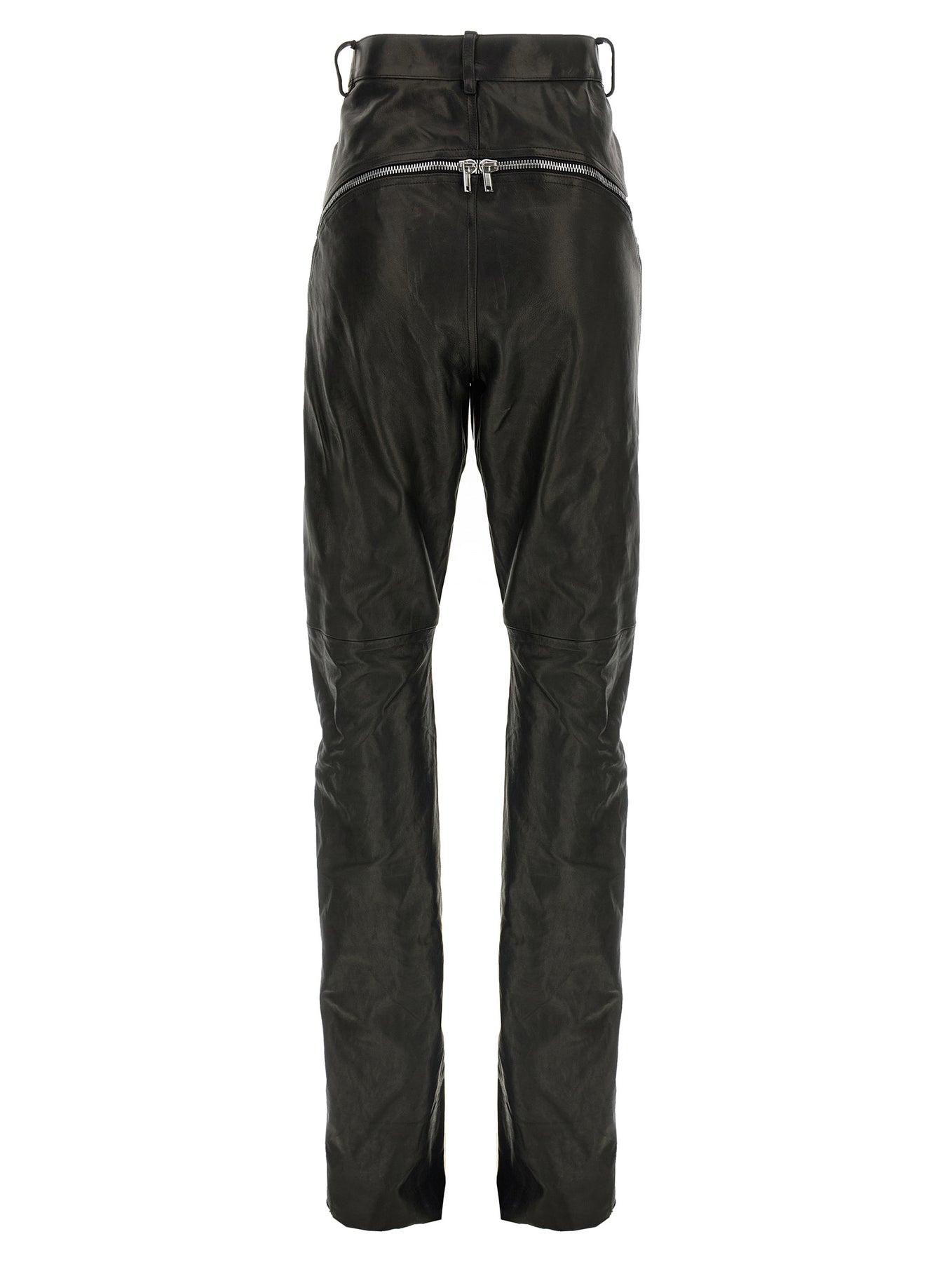 'Bolan Banana' nappa pants, high-waisted model with adjustable boot leg thanks to the zip, five pockets, zip and front button closure, raw cut on the leg bottom.