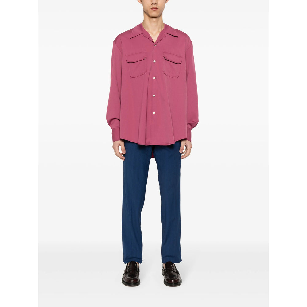 navy blue cotton blend seersucker texture vertical stripe pattern belt loops two side slash pockets pleat detailing to the front pressed crease full-length two rear button-fastening pockets slim cut front zip fly fastening and off-centre button fastening