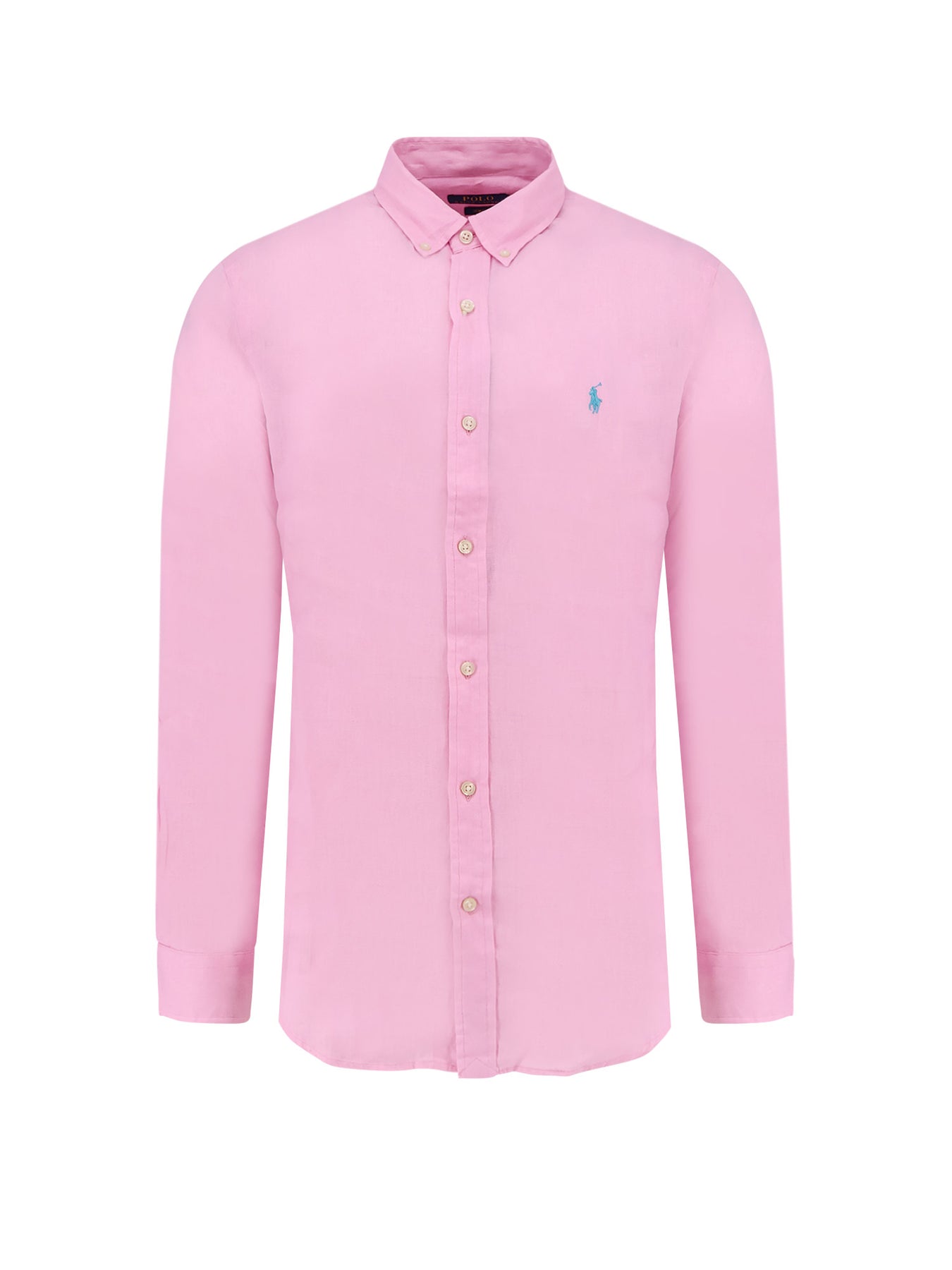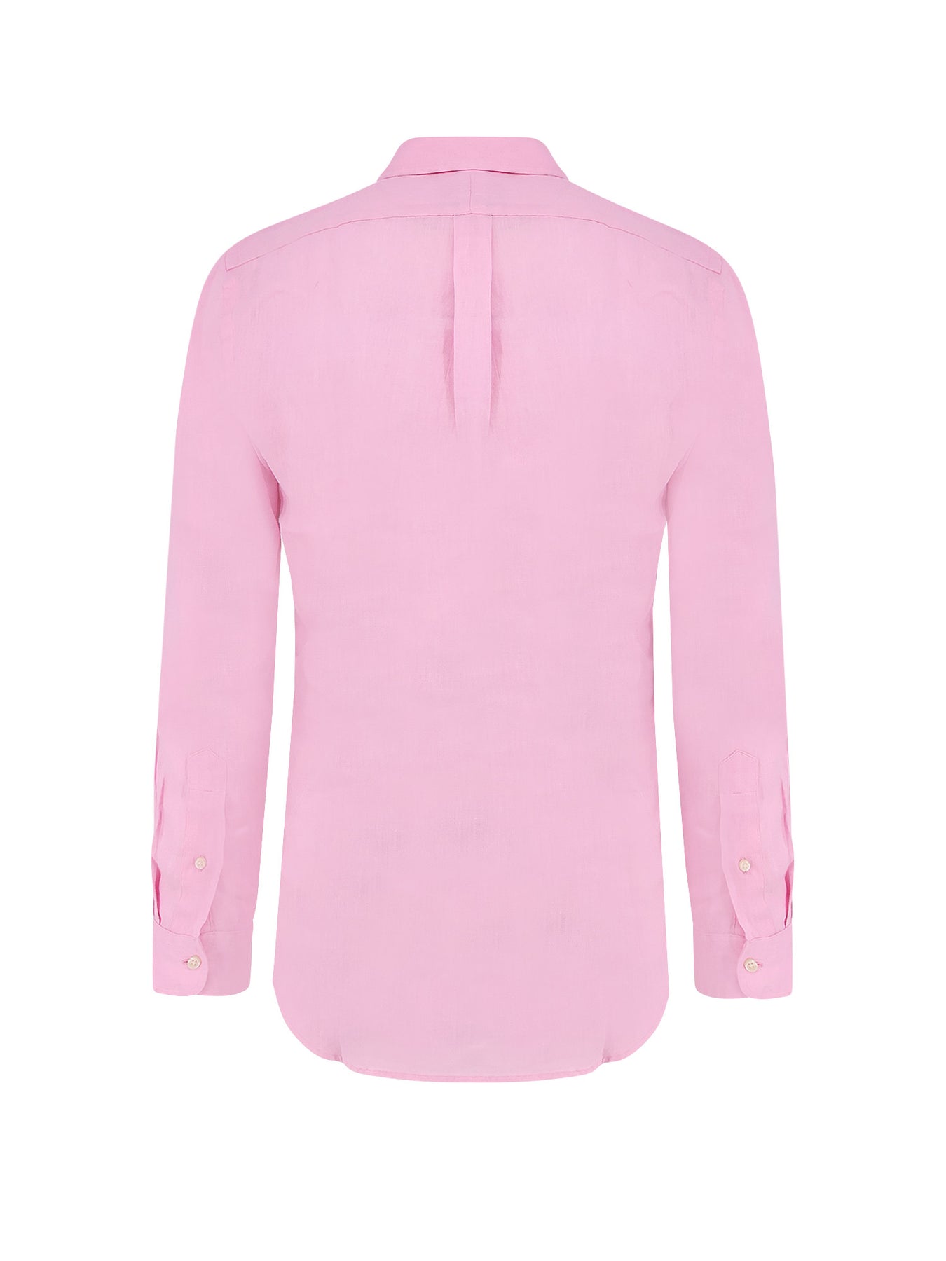 Buttoned-down pointed collar Closure with buttons Long sleeve with buttons Slim fit 100% linen SKU: 710968915_002