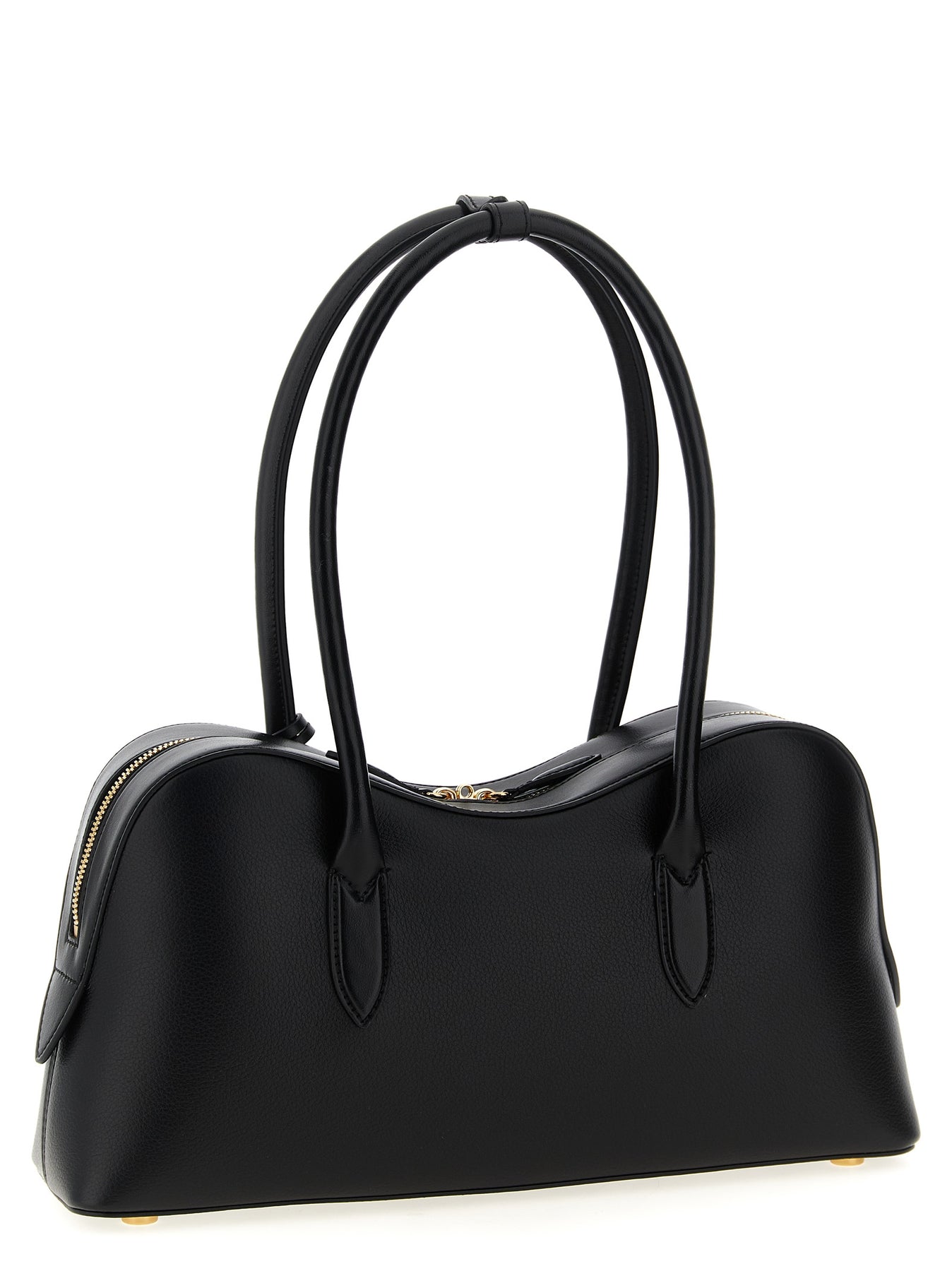 'Ryder' shoulder bag in hammered leather-effect fabric, metal padlock detail and front embossed logo, double fixed handle, top zip closure, canopy hemp lining. SUSTAINABLE: Products that do not use leather respecting cruelty-free ethics.