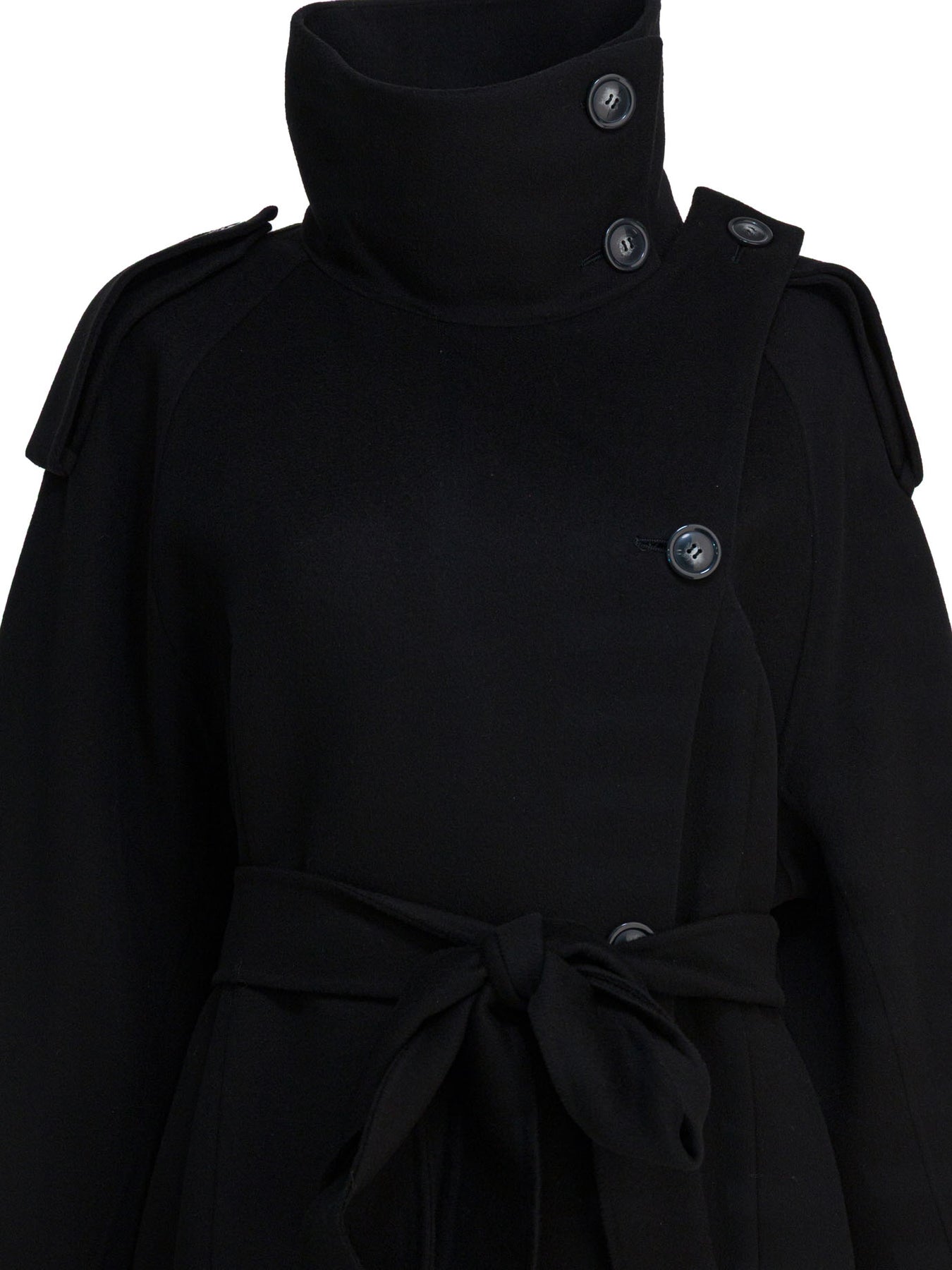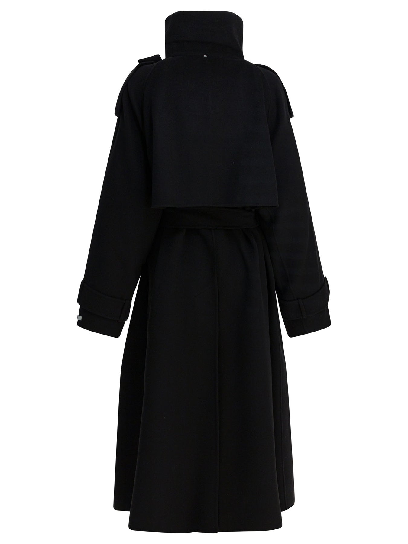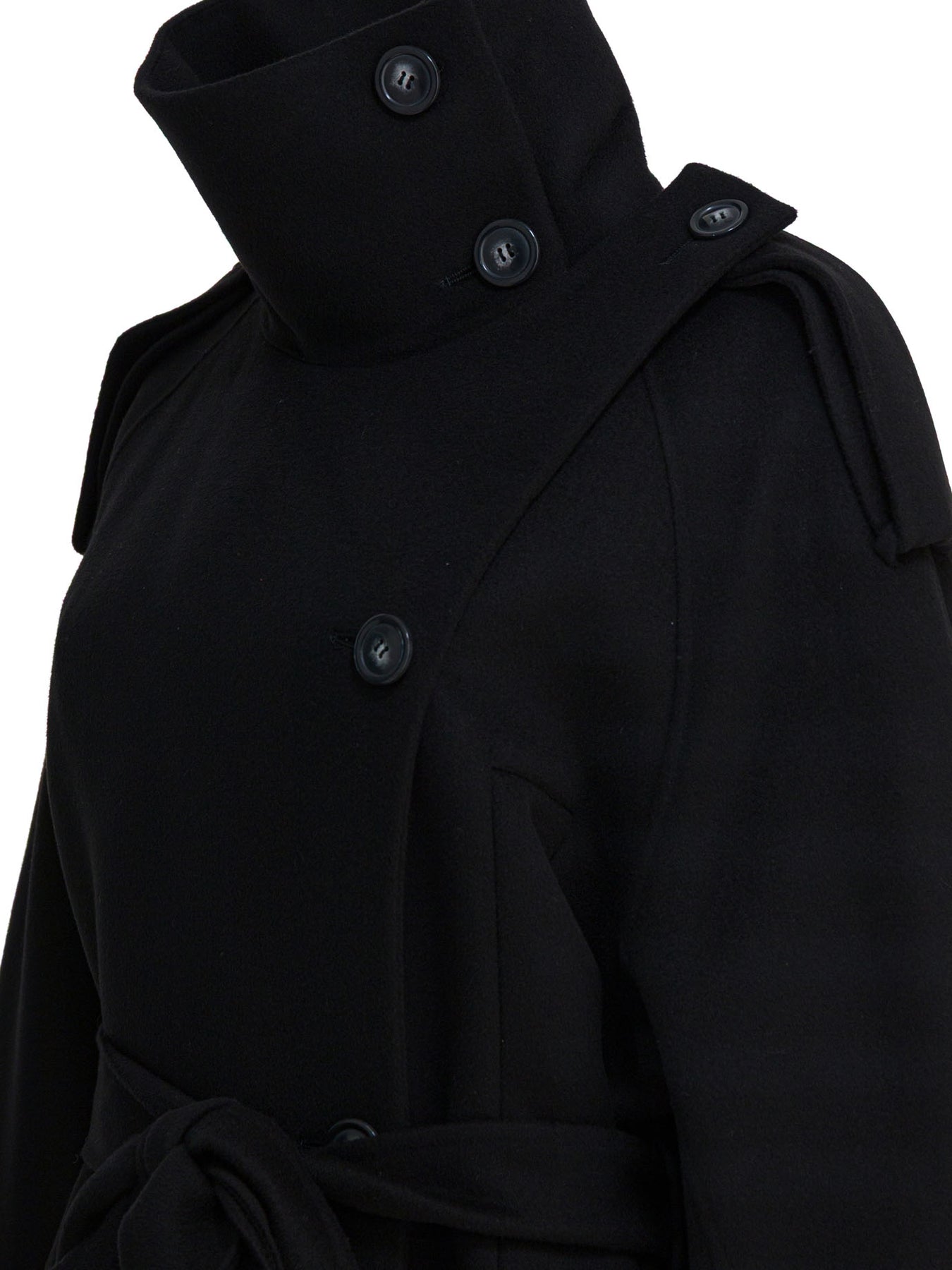 Max Mara Sportmax virgin wool long coat, double construction of pure wool. It features side placket, raised collar and button closure and matching belt. The wide structure accompanies a relaxed silhouette, with shoulders defined by toggles and back enhanced by bibs. Pockets are made deep welt along the sides for concrete functionality and clean finish. || - Solid color - Pure virgin wool double - Side buttoning - Raised collar - Welt pockets on the hips - Back bib - Button and belt closure - Toggles at shoulders and cuffs - Oversize fit