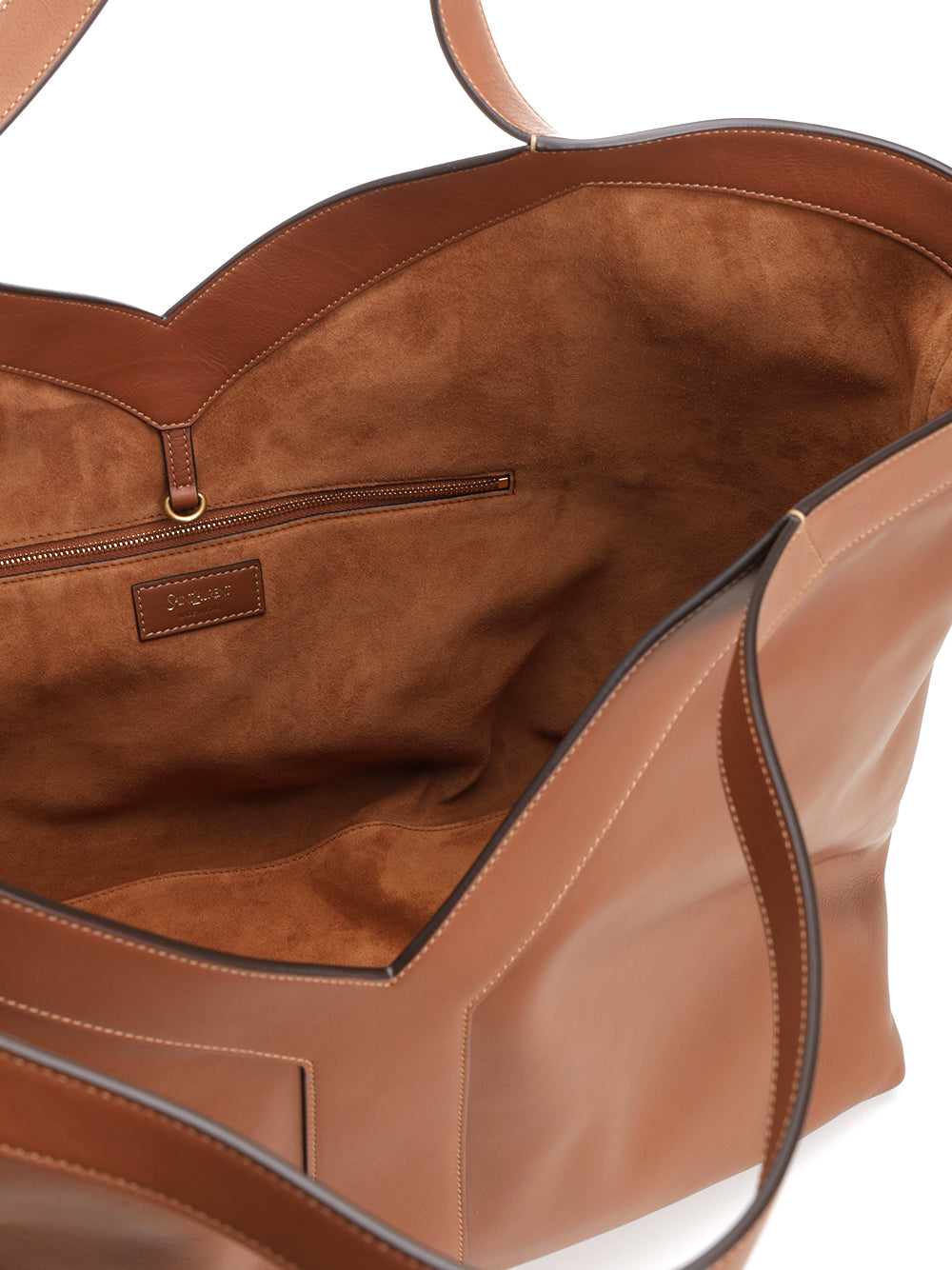 Large "Y" tote bag in finely grained leather by Saint Laurent, fully lined in tone-on-tone suede, decorated with a refined Y signature, internal zip pocket, hook fastening