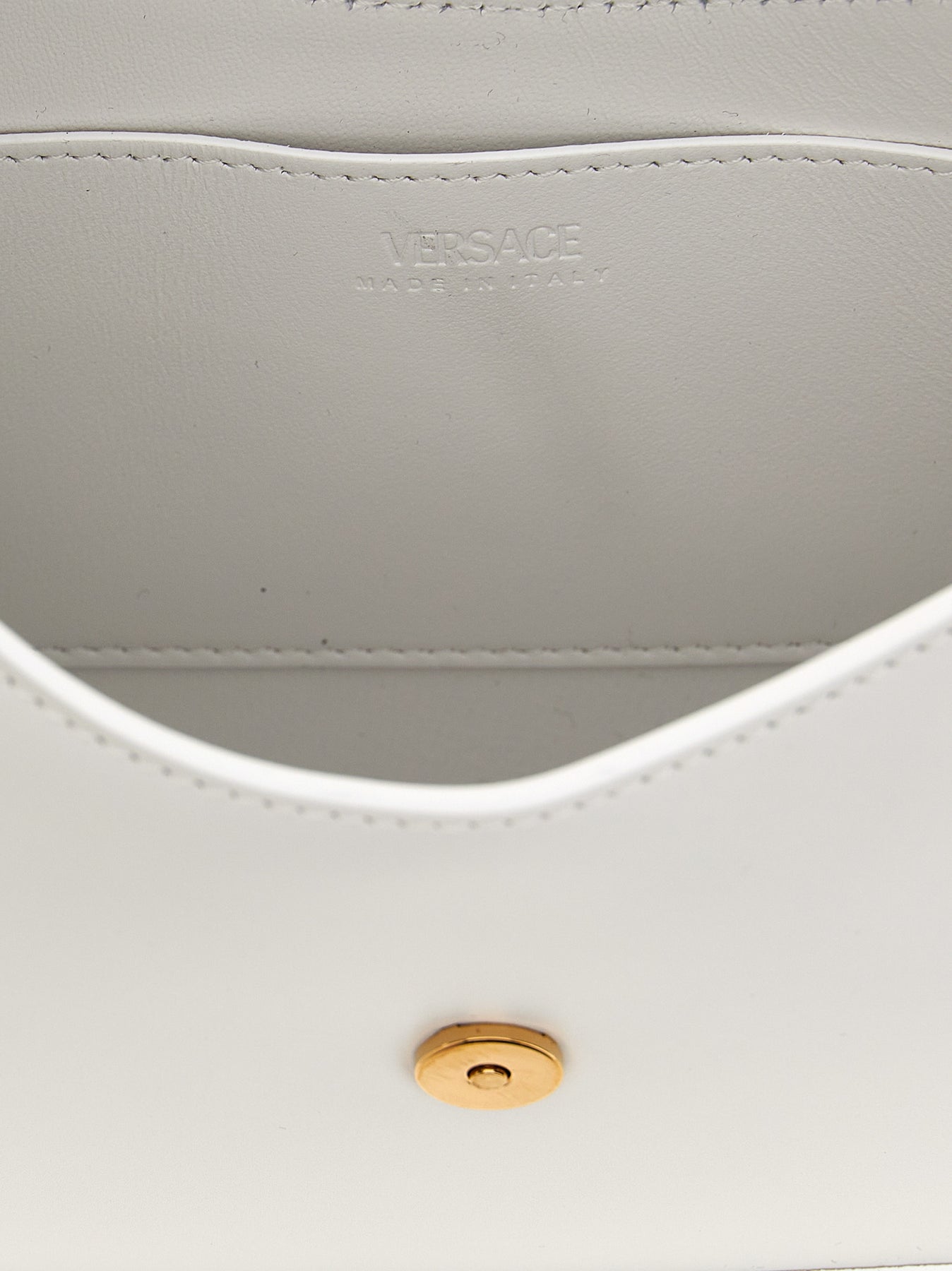 Small 'Greca Goddess' leather shoulder bag with magnetic closure, iconic metal detail, adjustable handle.