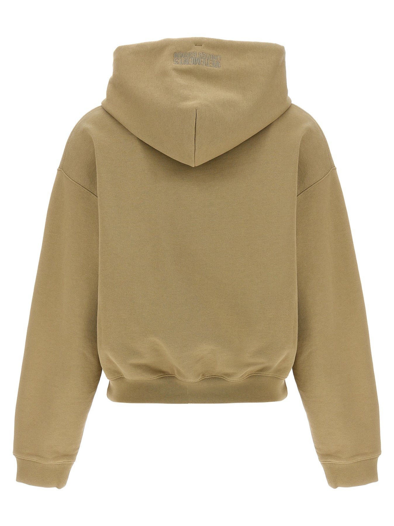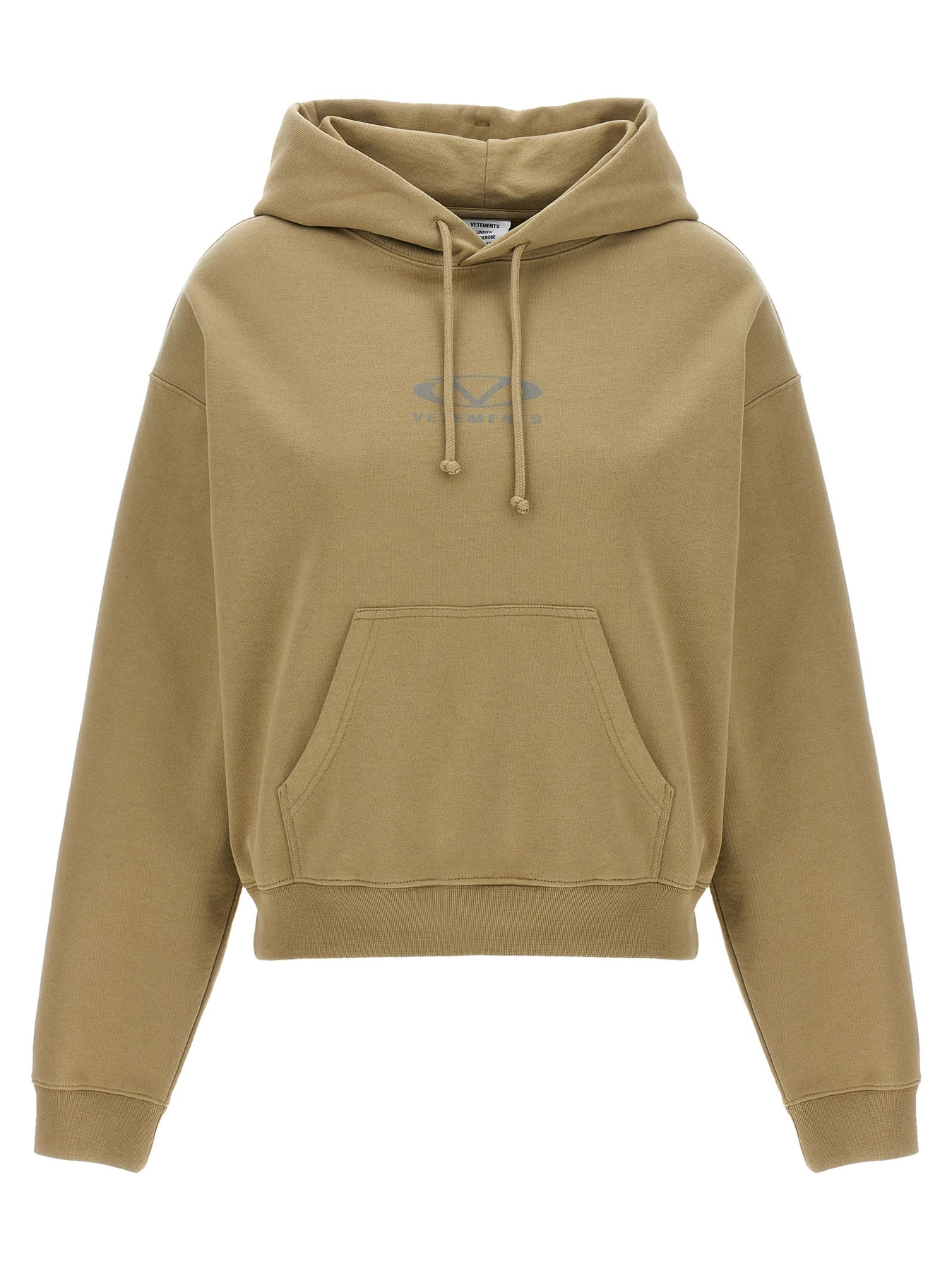 Brushed cotton hoodie with front 'Oval Logo' print, kangaroo pocket, logo embroidery on hood, long cuffed sleeves.