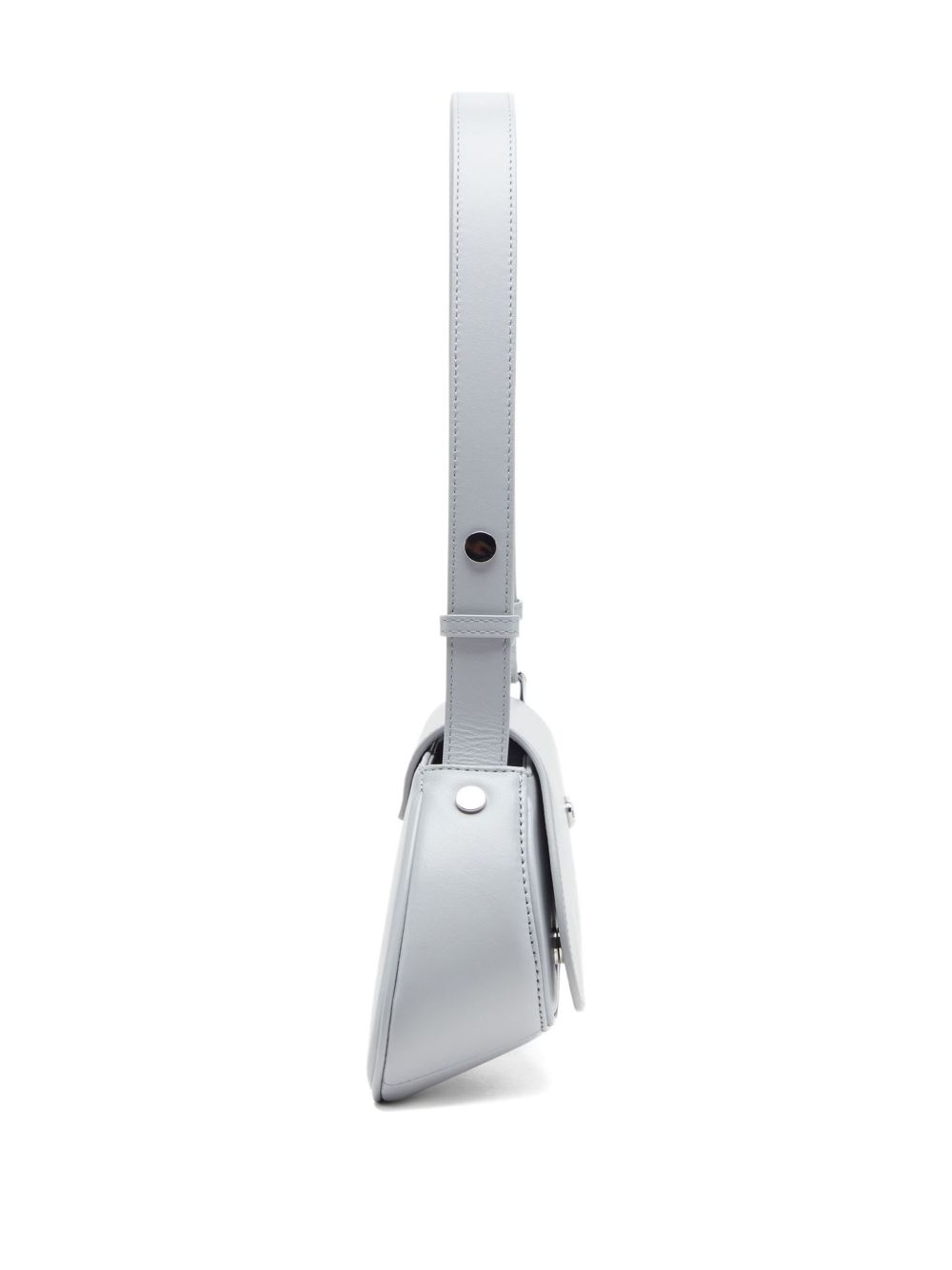 light grey semi-gloss finish oval logo detail adjustable shoulder strap curved shape