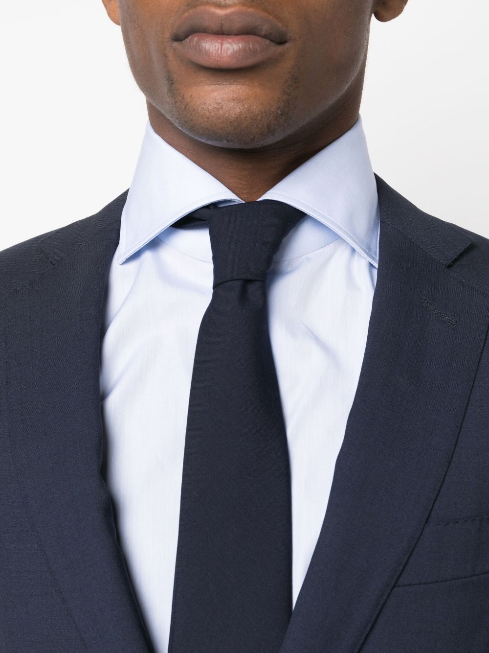 light blue cotton cutaway collar front button fastening long sleeves buttoned cuffs curved hem