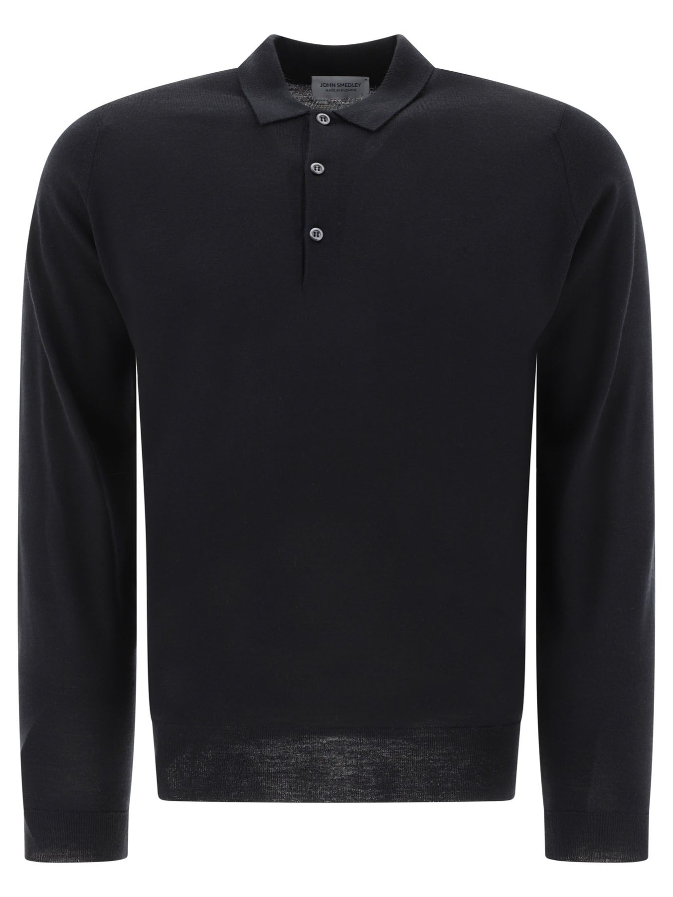John Smedley merino wool "Belper" polo shirt, made from fine 30-gauge knit with a long-sleeved construction. The garment features a standard-fit silhouette, achieved through extra-fine merino wool yarn. The sporty collar is complemented by a three-button front closure, complemented with fine trim along the edges. The compact knit construction ensures an even hand and defined details. || - Solid color - Long sleeves. - Extra-fine merino wool - 30-gauge fine knit - Sport collar - Three-button closure - Regular fit