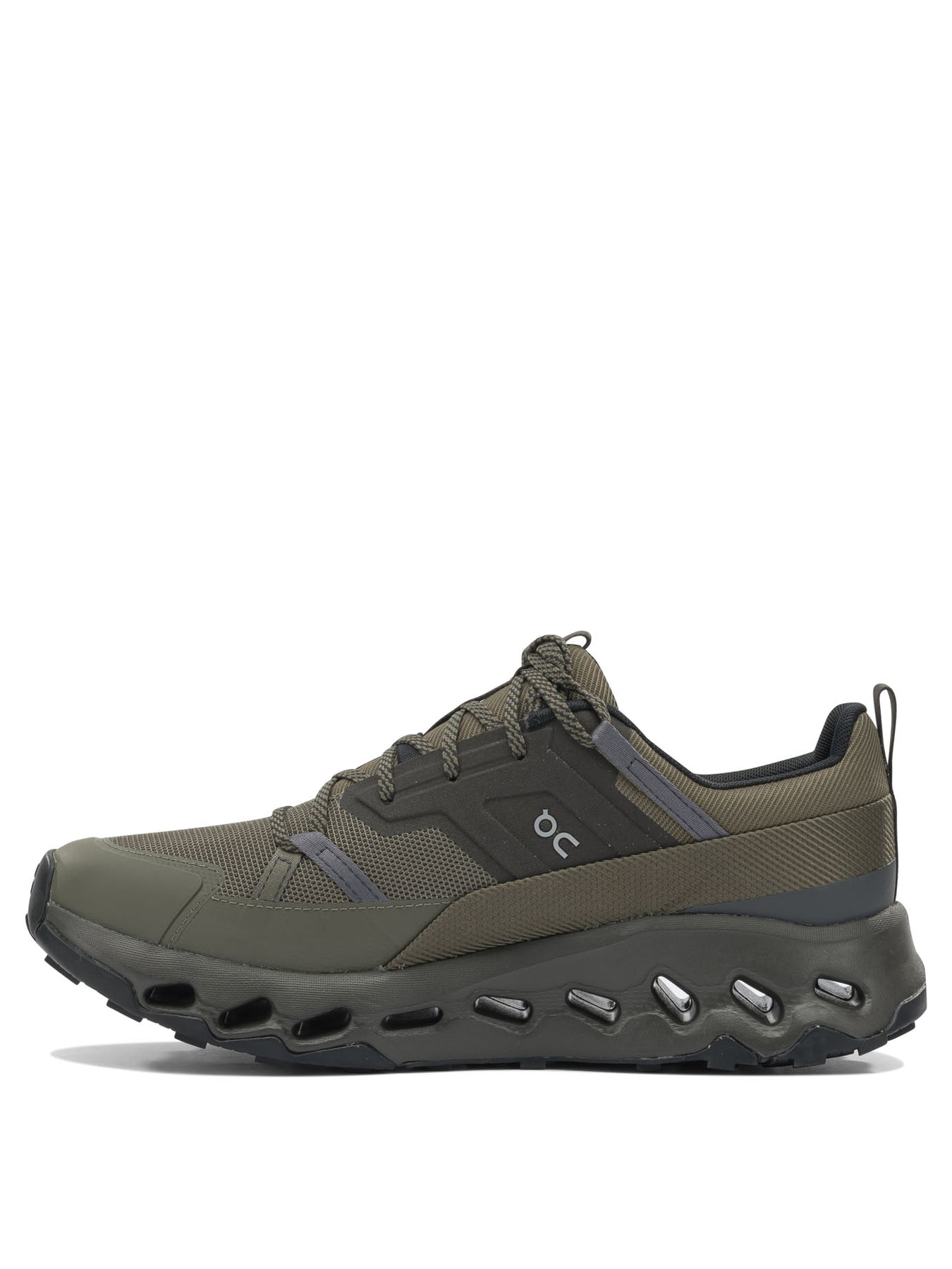 "Cloudhorizon Waterproof" On Running sneaker, a technical hiking shoe constructed with a technical mesh upper featuring an integrated waterproof membrane. The silhouette is structured and extends from heel to toe, designed to provide stability and durability. The outsole uses Missiongrip™ rubber technology, ensuring grip on dry and wet surfaces. The midsole features CloudTec Phase™ cushioning and Helion™ super foam for protected landings and a smooth stride. || - Waterproof membrane integrated into the upper - Missiongrip™ rubber outsole for advanced traction - CloudTec Phase™ and Helion™ cushioning optimized for hiking - Lightweight construction with stable support from heel to toe - Flexible technical mesh fabric - Designed for grip on moderate uneven terrain - Traditional lace-up closure