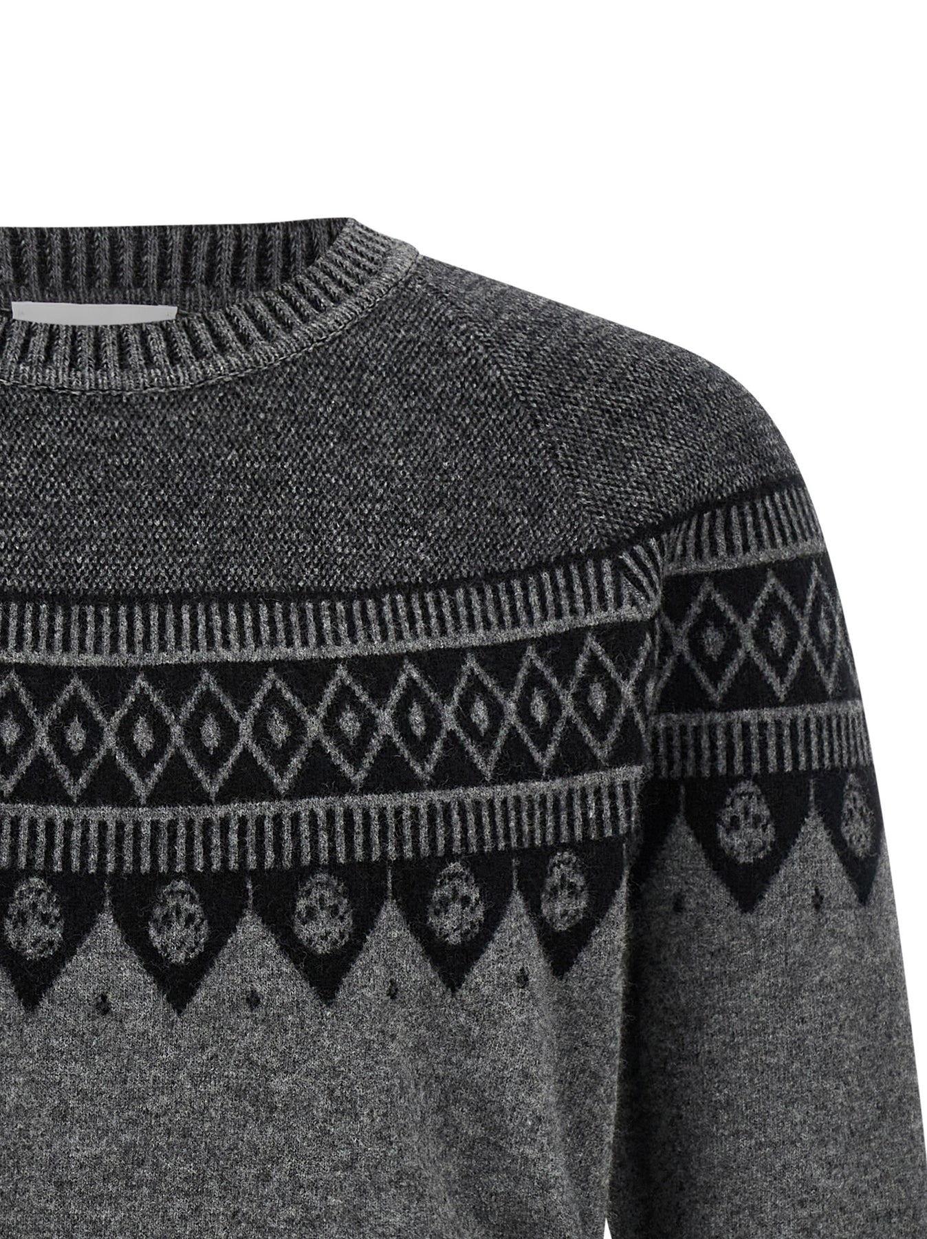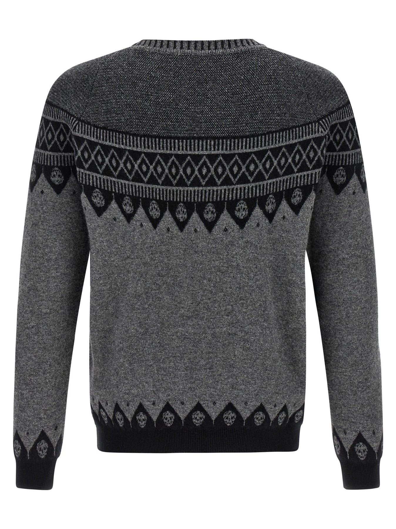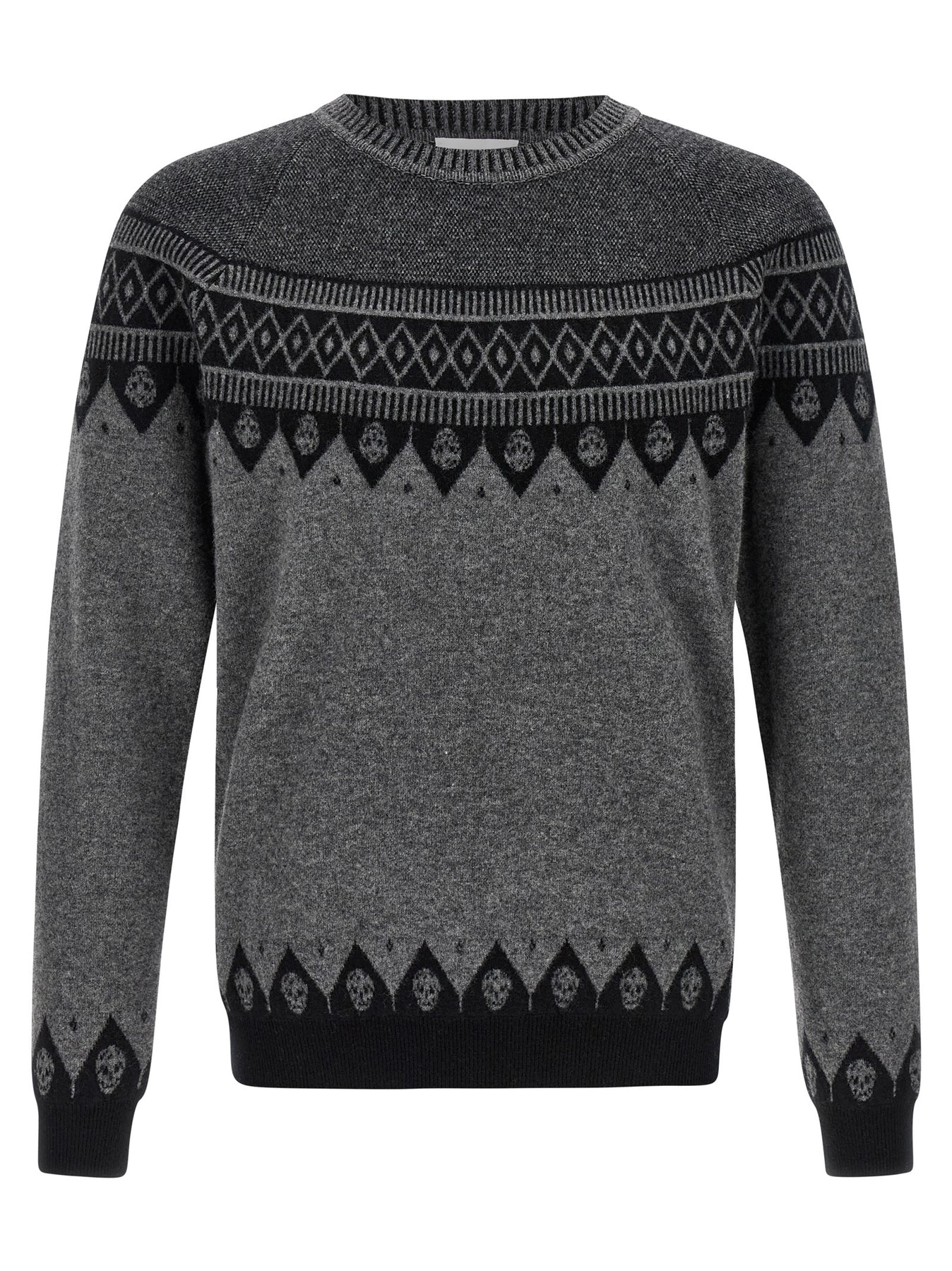 Wool sweater with jacquard 'Skull' pattern, crew neck, long cuffed sleeves.