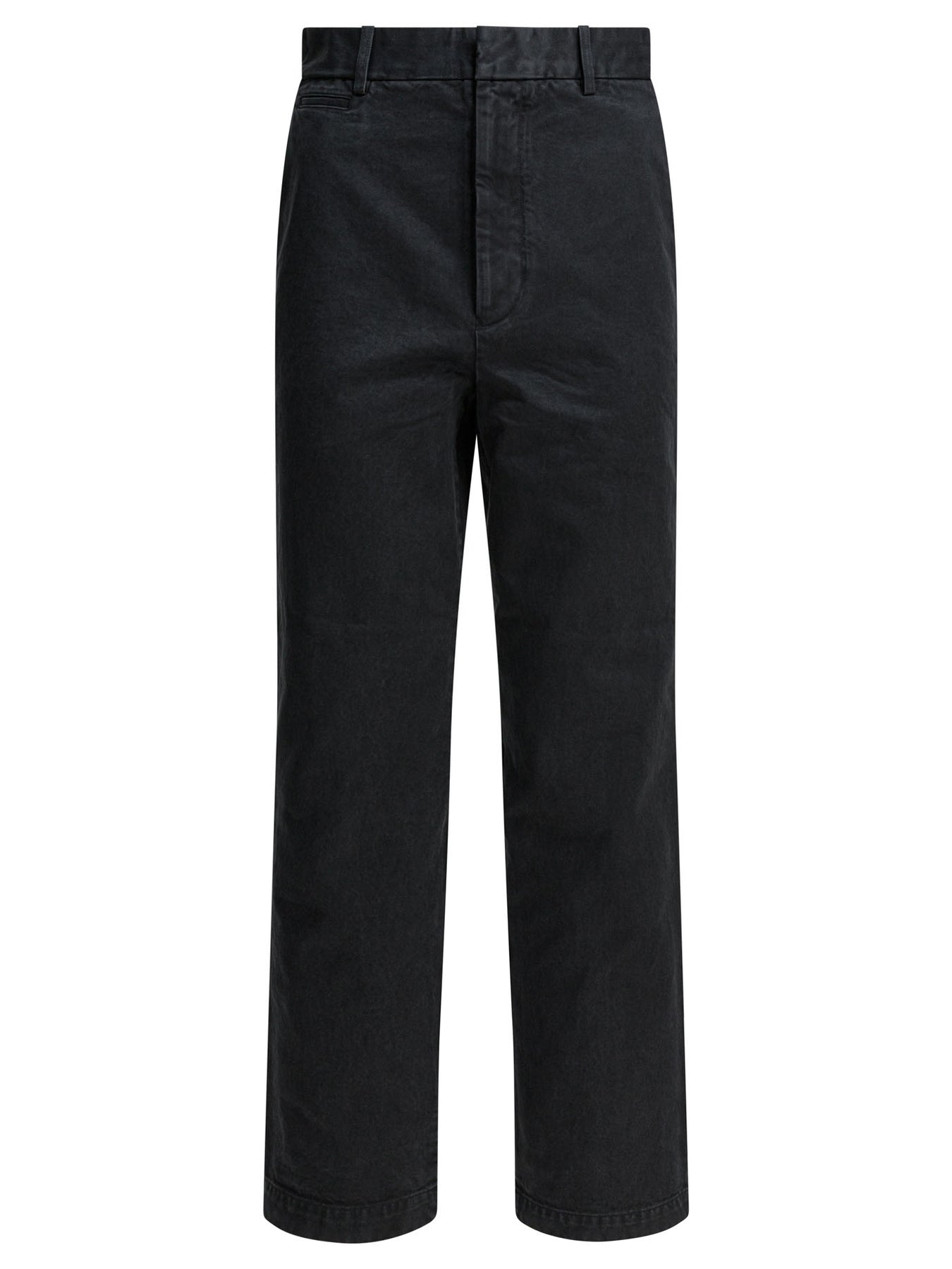 Auralee straight-leg chino pants, made of extra-long fiber Finx Egyptian cotton woven in three-ply. The silhouette features a straight-leg construction with a clean cut down the leg and minimal detailing for an essential look. The fabric undergoes garment dyeing followed by hand finishing, giving a distinctive smooth texture and visual depth to the material. || - Solid color - Midwaist - Finx Egyptian cotton with extra long fiber - Three-ply weave for added fullness - Hand-finished after dyeing - Smooth surface fabric - Regular fit