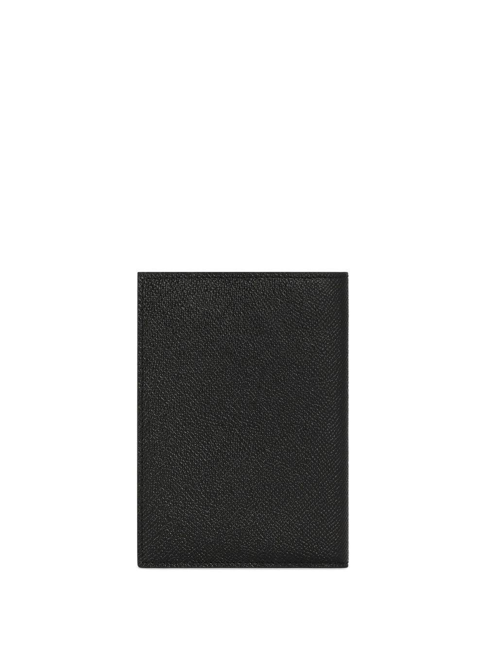 jet black calf leather pebbled texture silver-tone logo plaque folded design card slots internal card slots