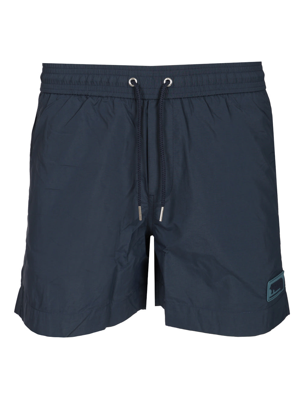 Nylon swimsuit with elastic waistband and drawstring, welt pockets and back pocket