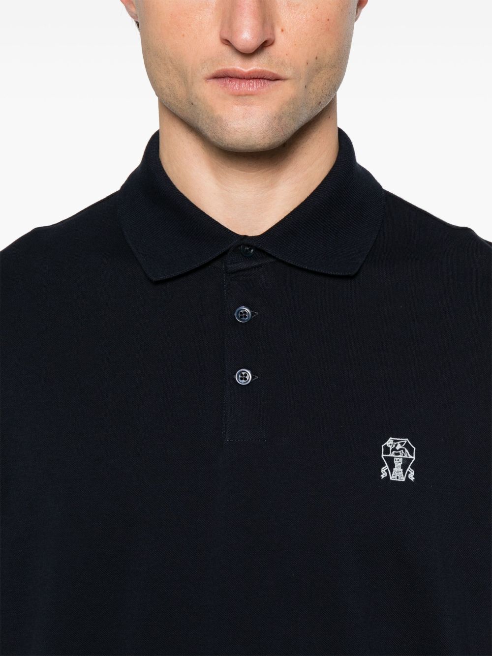 midnight blue front button placket ribbed cuffs short side slits polo collar