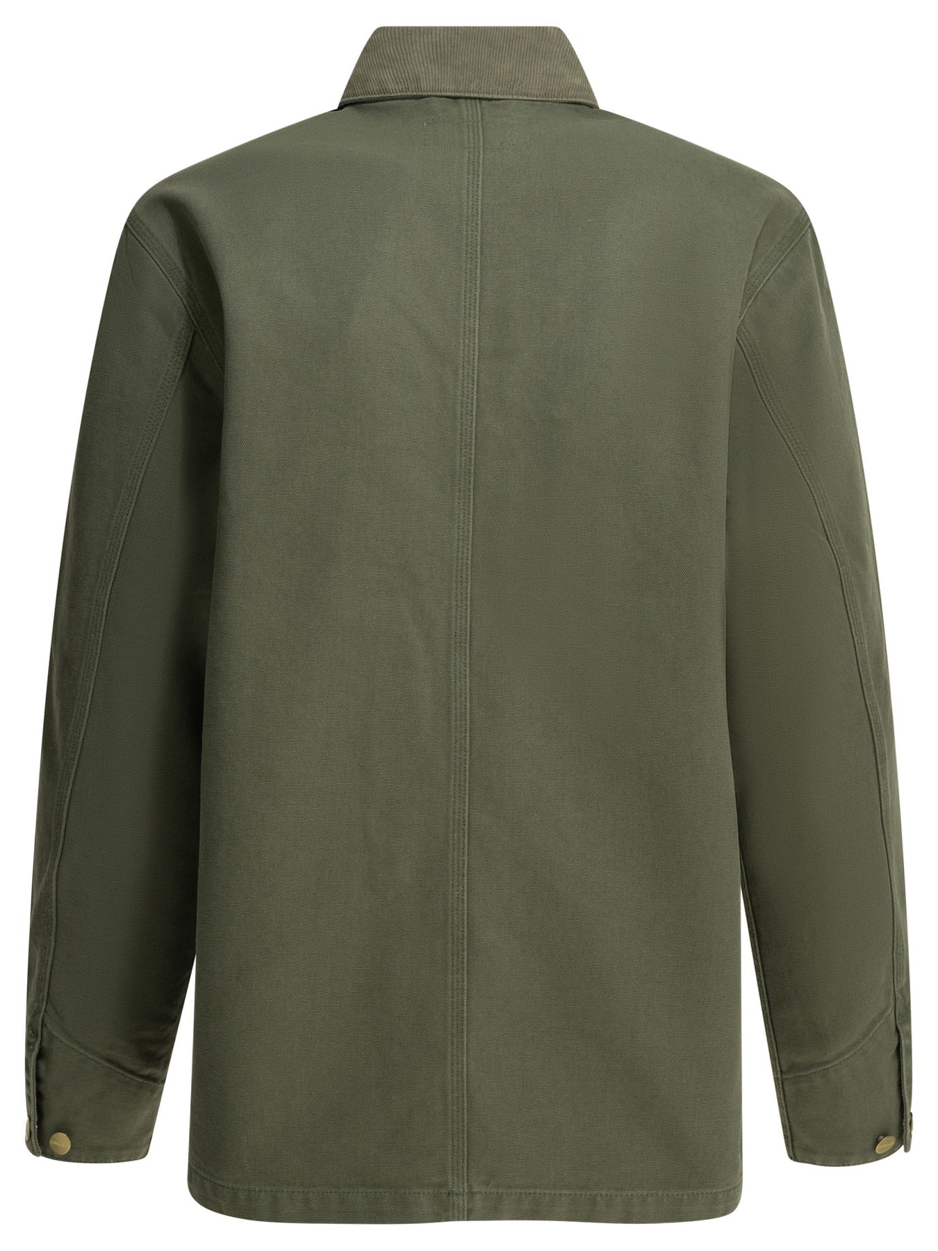 Carhartt WIP lightweight "Michigan" jacket with Dearborn heavy cotton canvas construction, unlined construction and straight silhouette inspired by work jackets. The design features triple-stitched seams, tactile contrast corduroy collar, full-length button closure, as well as front patch pockets and chest pockets. Square fabric label detail applied to the front. || - Long sleeves - Woven label logo applied to front - Corduroy collar - Adjustable cuffs - Front button closure - Patch pockets on chest and front - Triple stitching on main construction lines - Unlined - Dearborn cotton canvas - Relaxed fit
