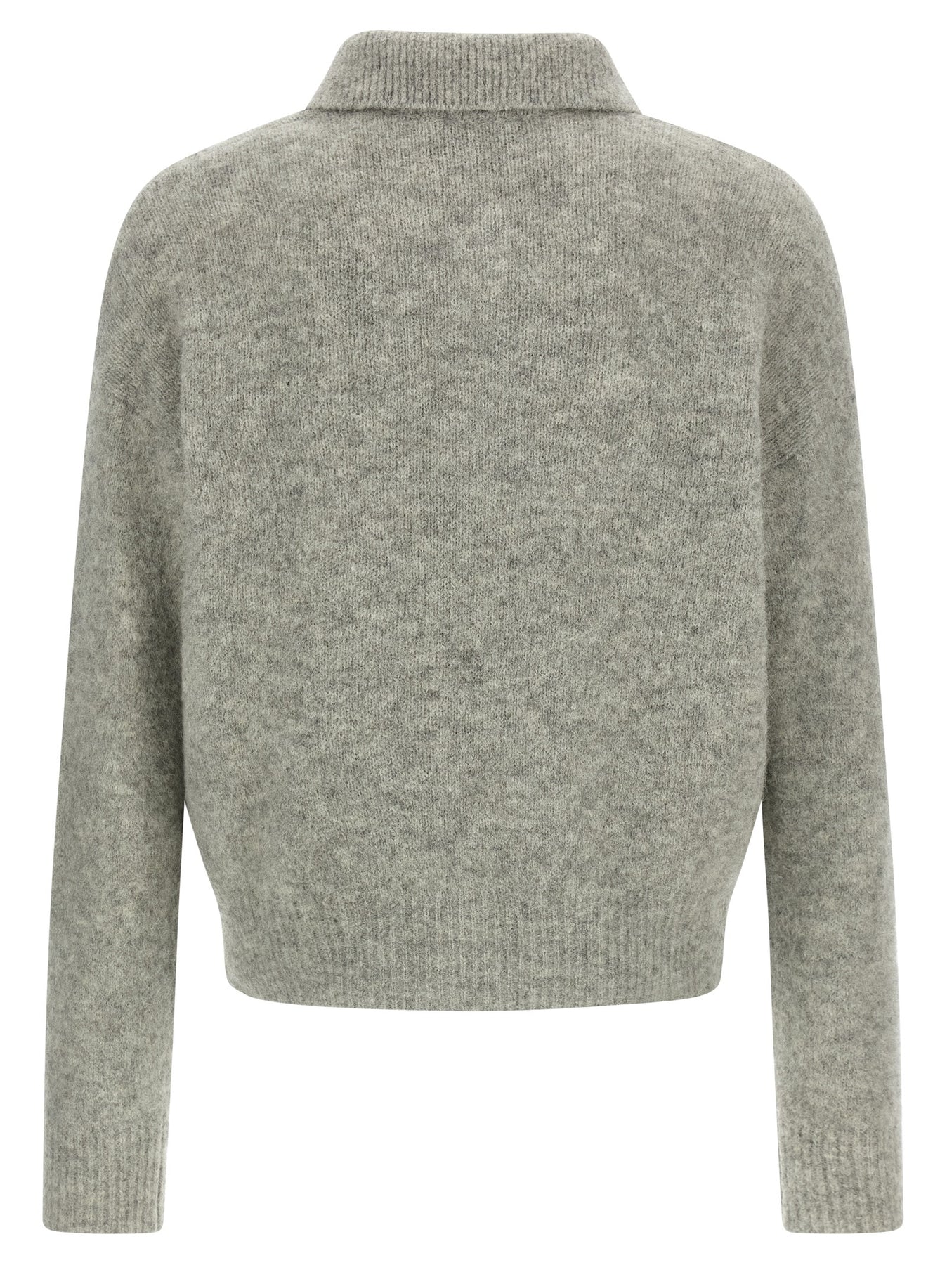 Jersey knit wool and alpaca polo shirt, front Ami embroidered logo, collar and buttons, long cuffed sleeves.