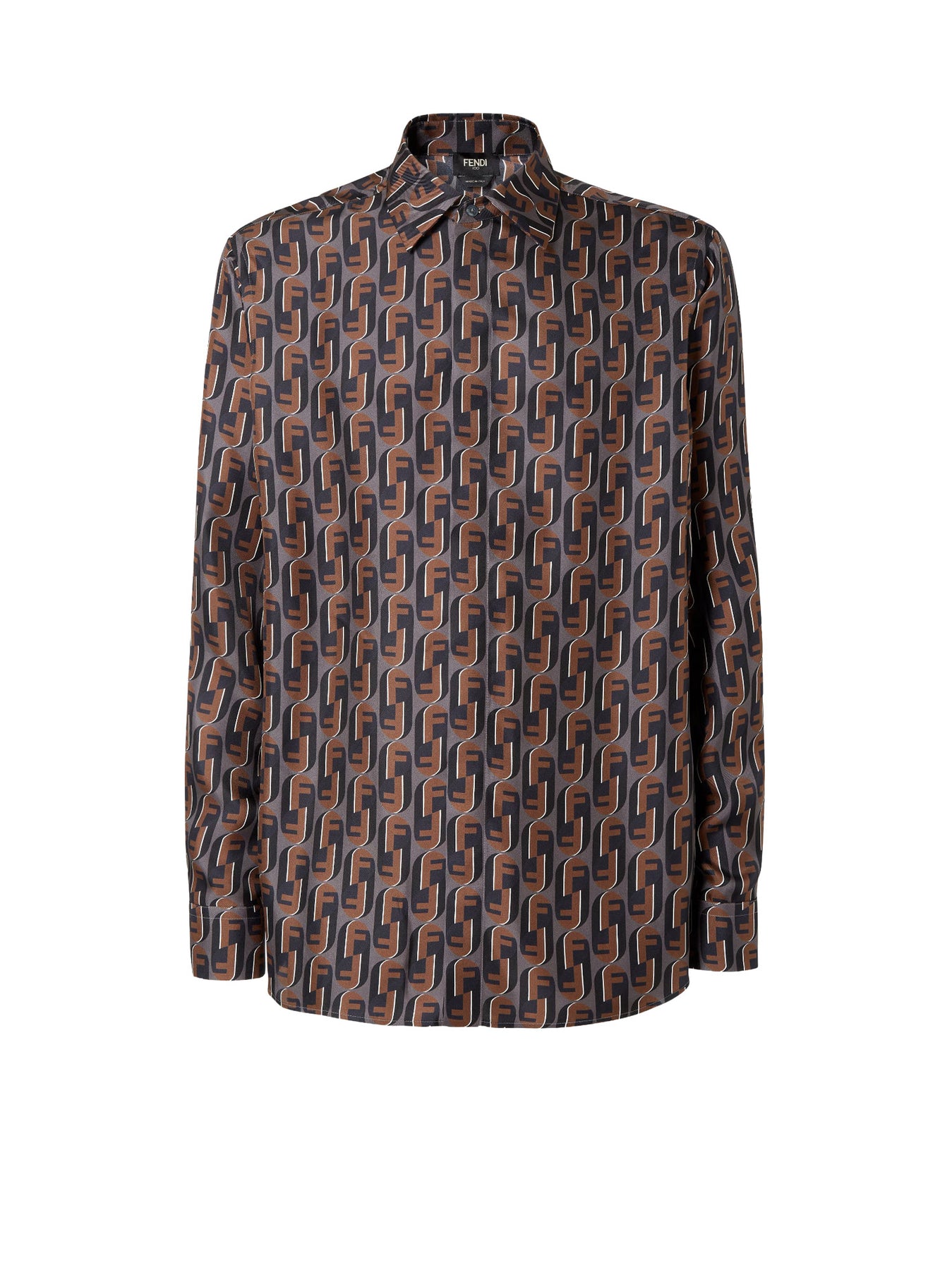 Button-down collar Hidden button closure Long sleeve All-over Fendinity motif Made in Italy 100% Silk SKU:FS1319AVDBF1TRS
