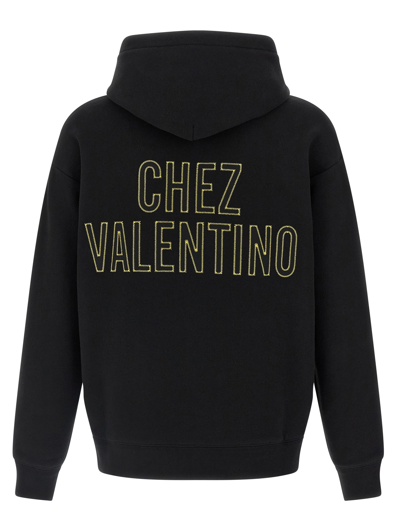 'Chez Valentino' brushed cotton hoodie with all-over embroidery, kangaroo pocket, long cuffed sleeves and dropped shoulders.