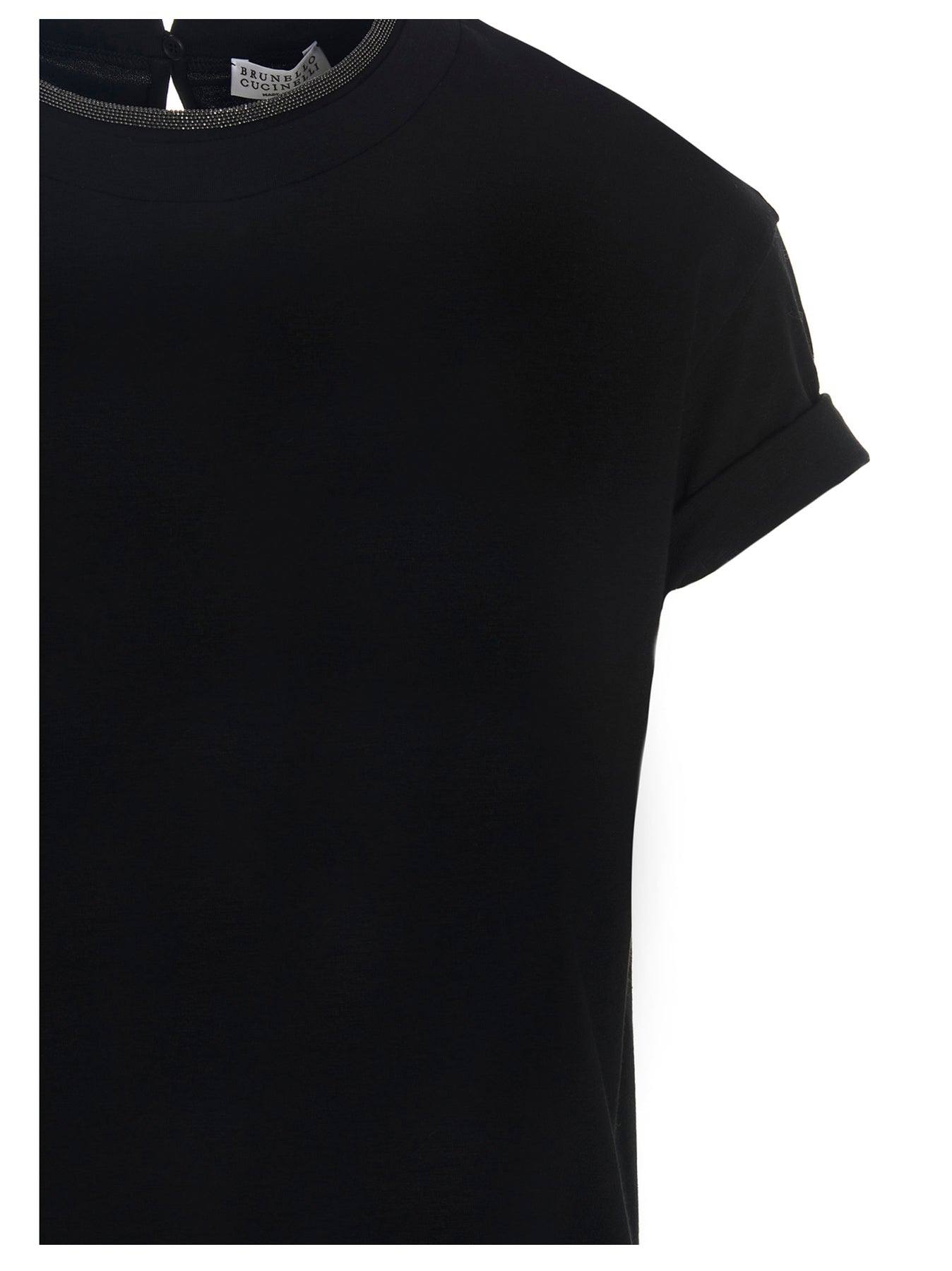 Cotton jersey T-shirt, crew neck with Monile detail, button closure with back drop cut-out details, short sleeve with lapels.