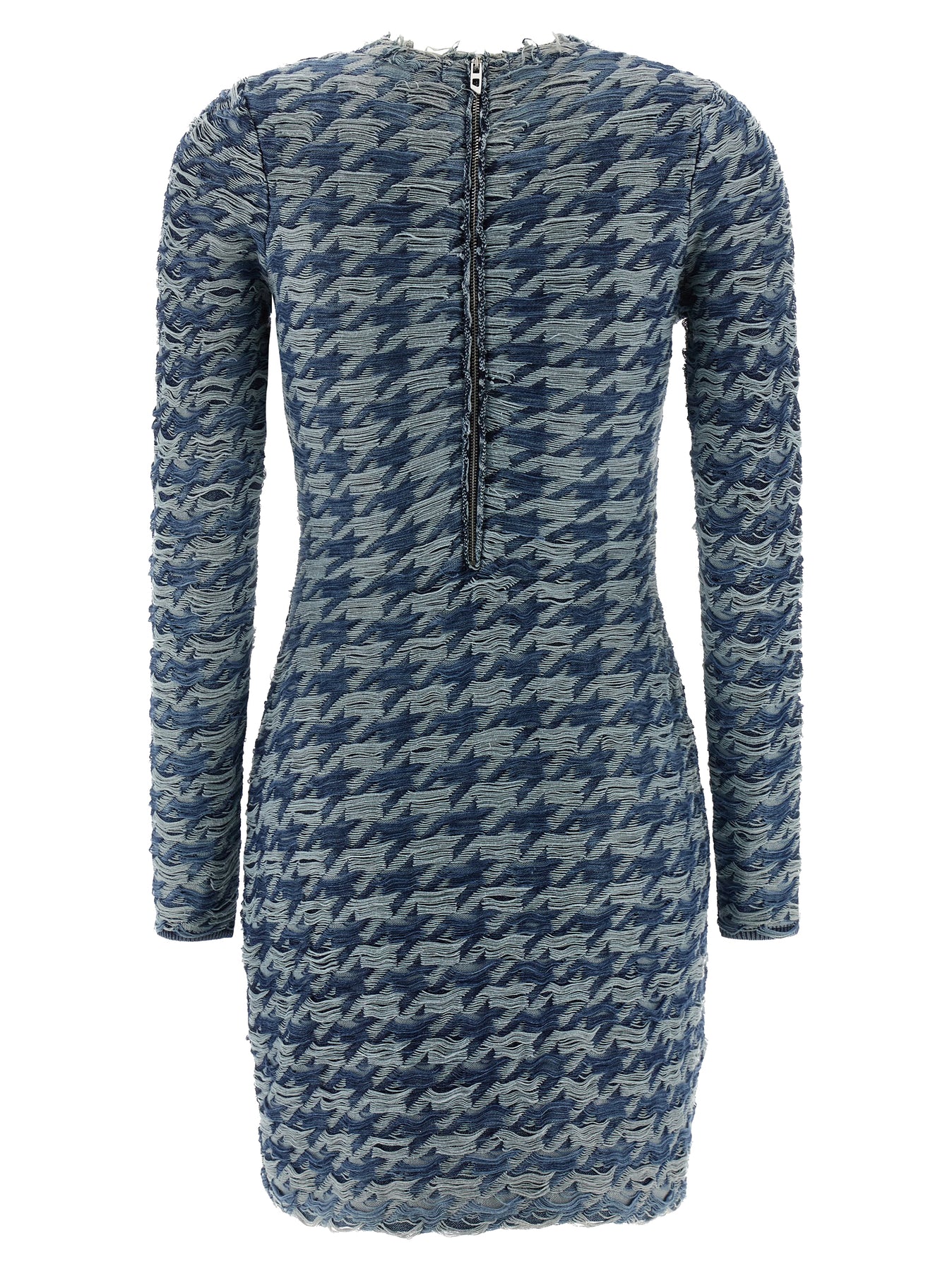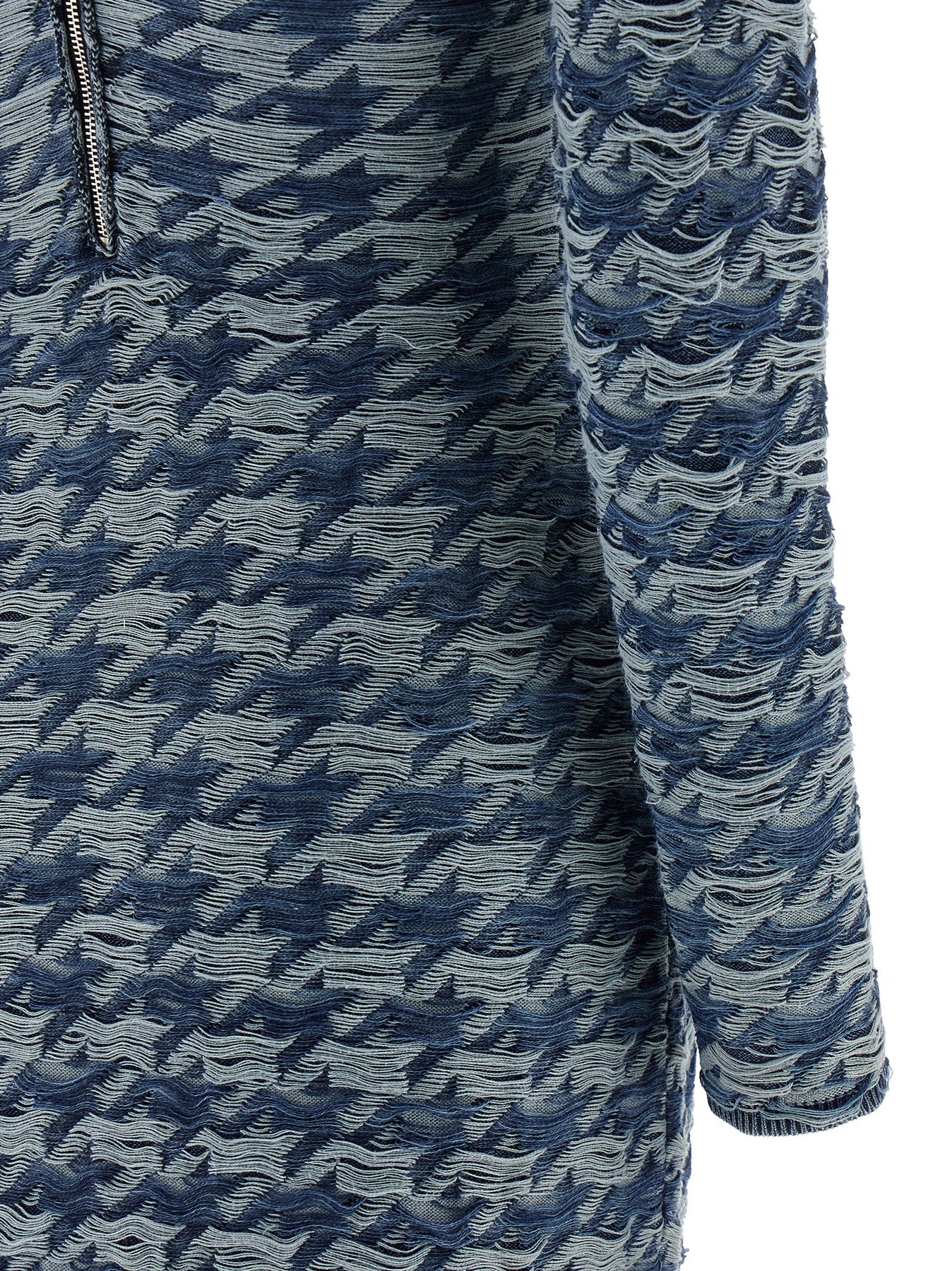 Mini 'M-Halma' laser-cut cotton dress to create a houndstooth pattern with burnt effect details and floating threads, crew neck, back zip closure, long sleeves.