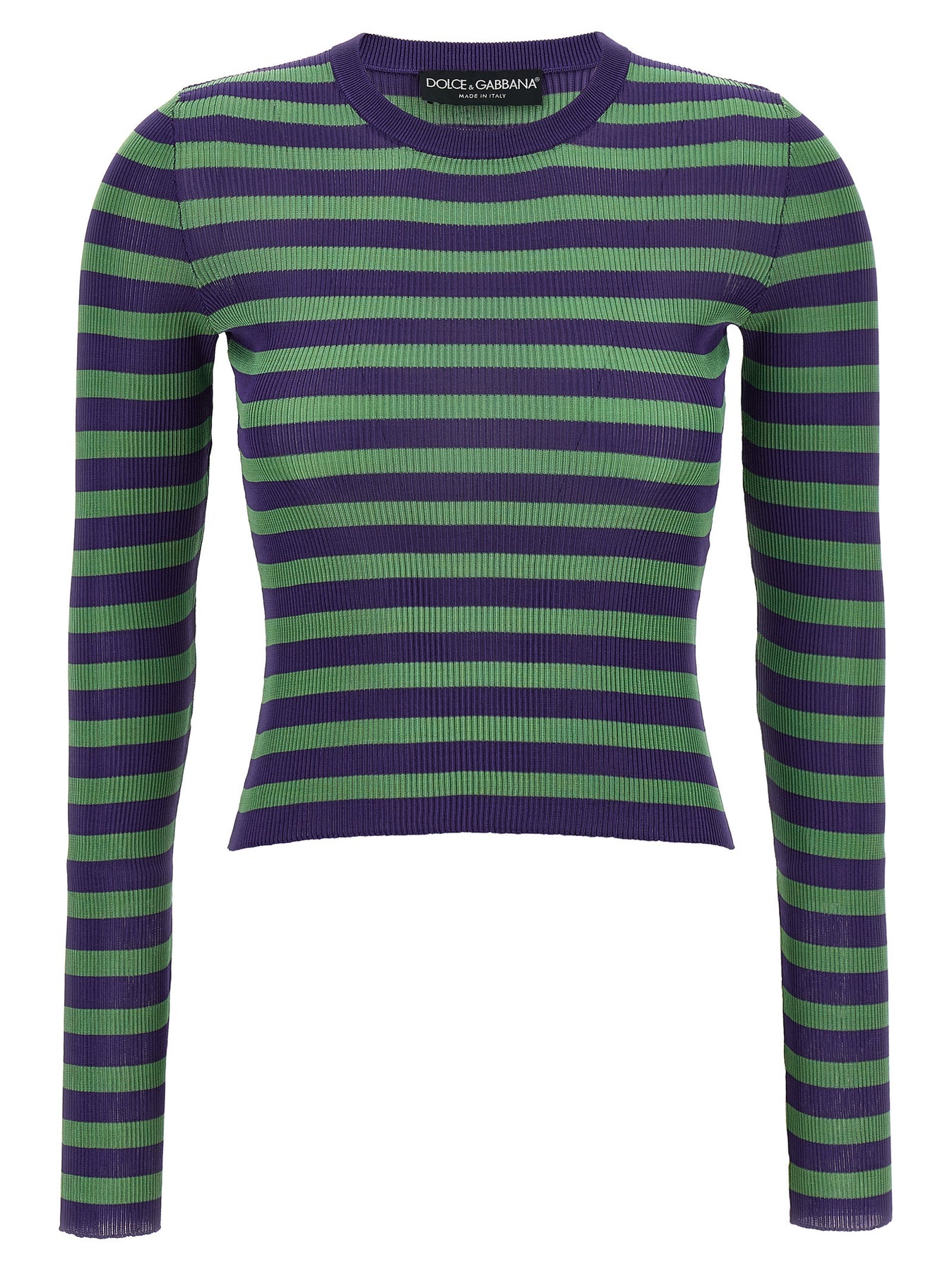 Striped stretch viscose ribbed sweater, crew neck, long sleeves.