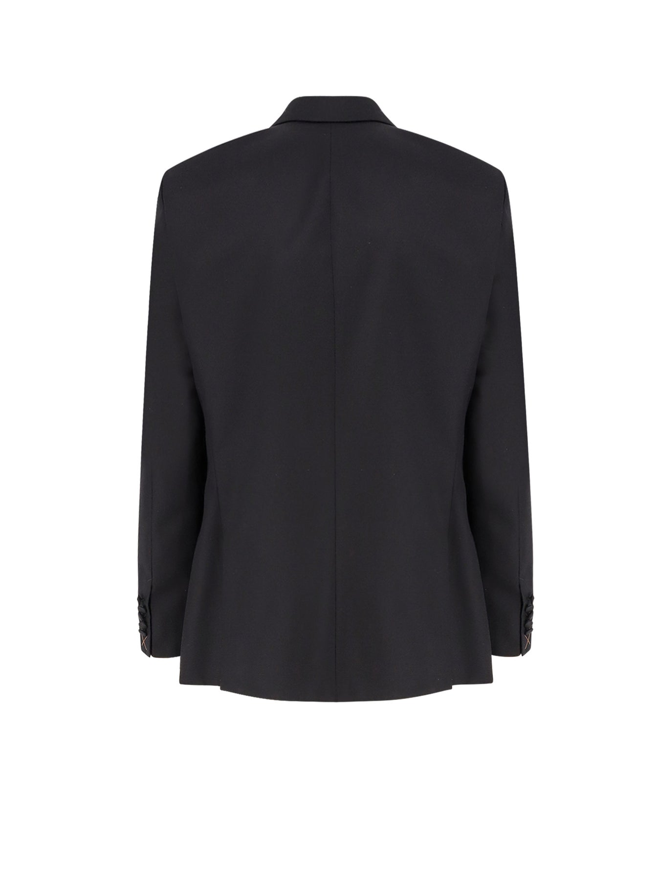 Blazer with single covered button Peak lapel Welt pockets Zipped trousers Slim fit 63% virgin wool, 21% mohair, 16% silk Lining: 100% cupro SKU: 50549651001