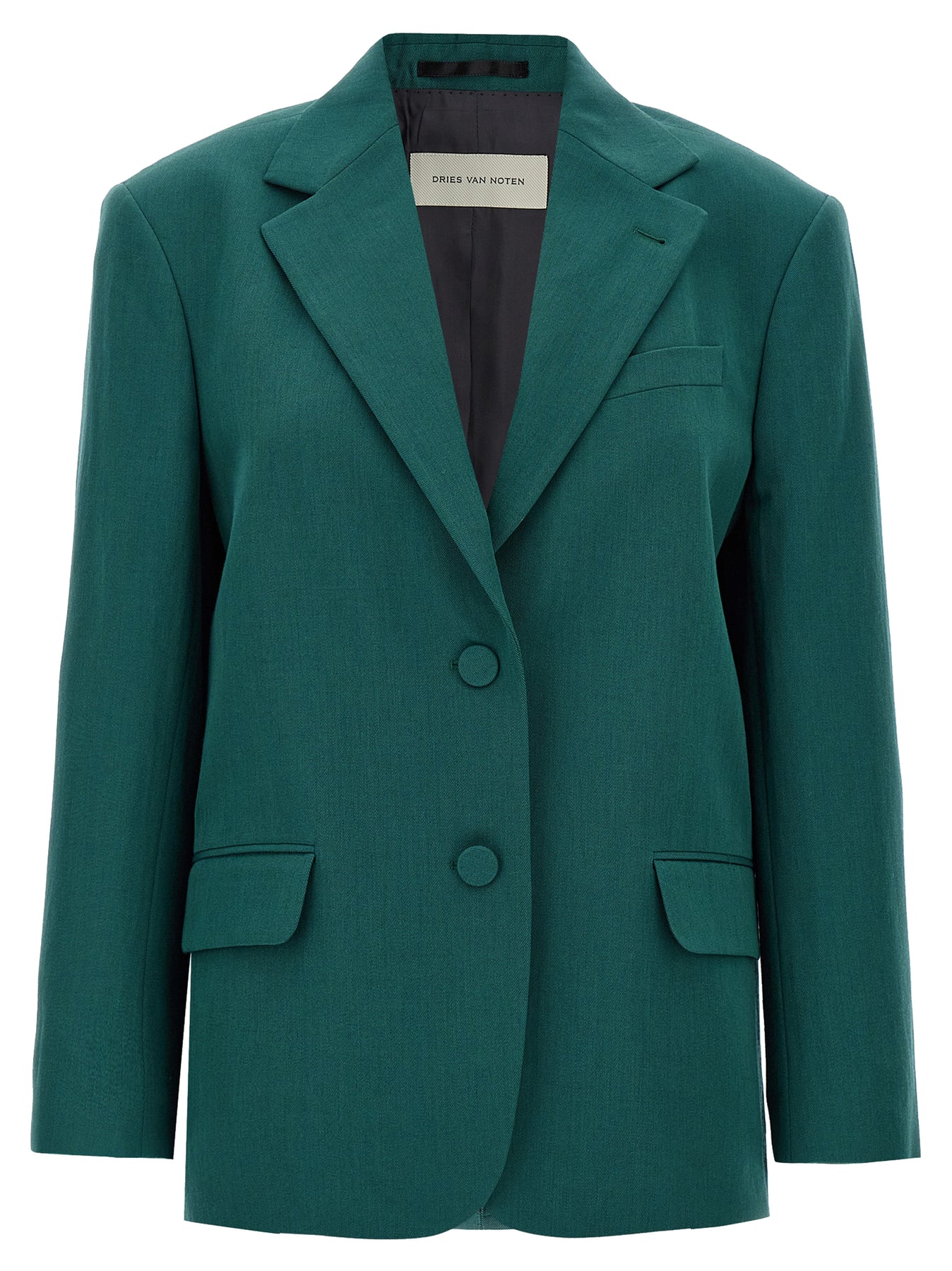'Birdy' single-breasted wool blend blazer with front button closure, mirror lapels, pockets, viscose lining, long sleeves, structural shoulders, back split.