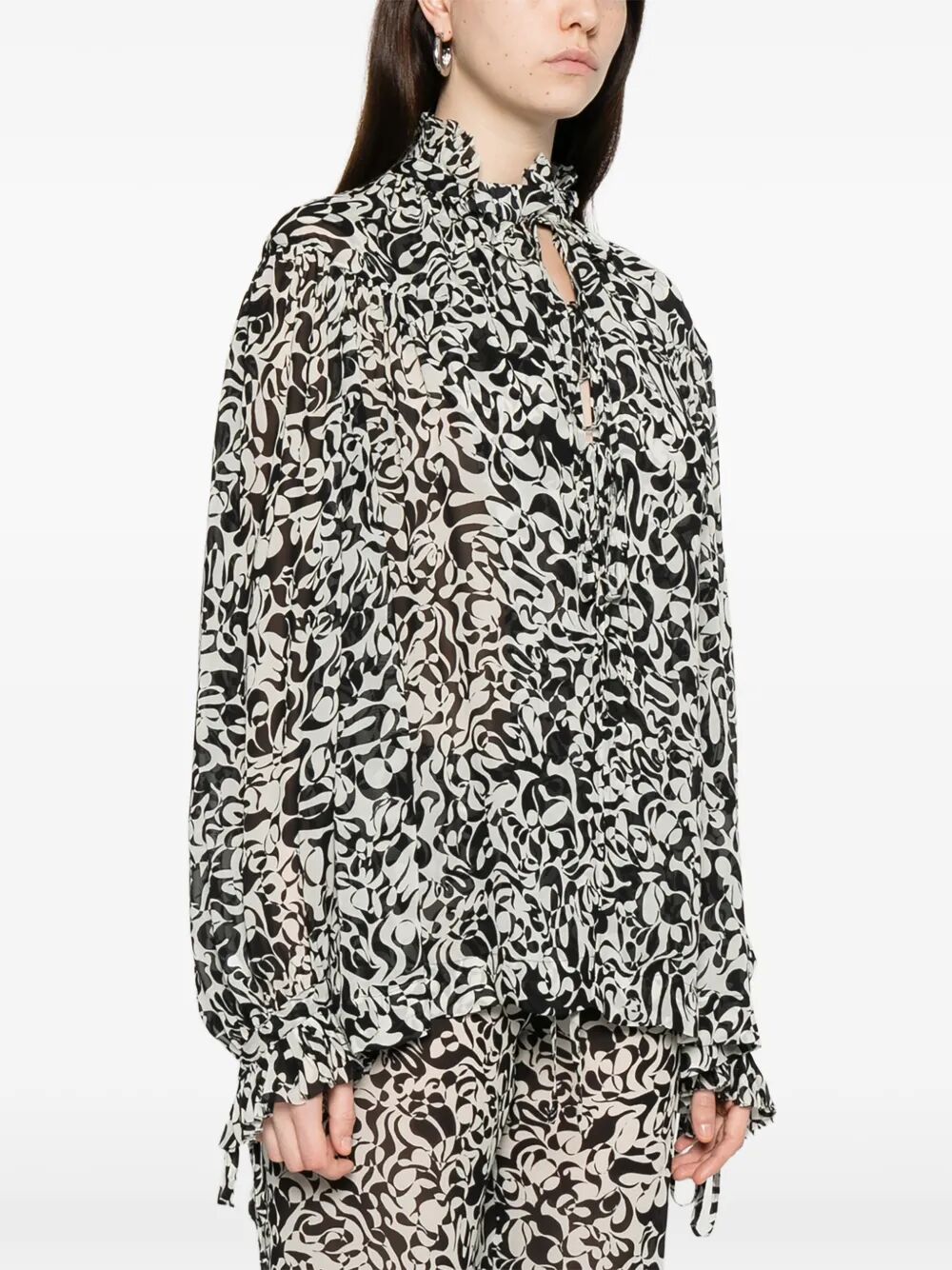 Catya Abstract-Print Shirt With Ruffled Collar