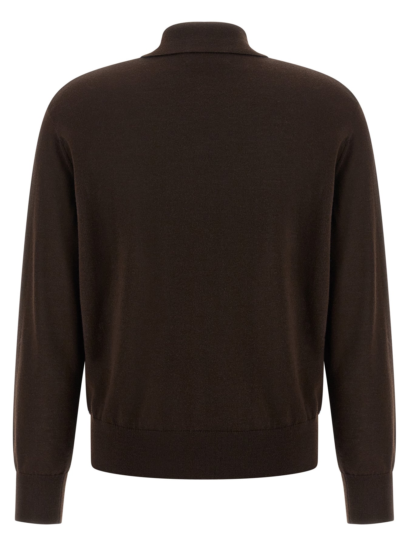 'Tuno' polo shirt in light merino wool with collar and buttons, long cuffed sleeves.
