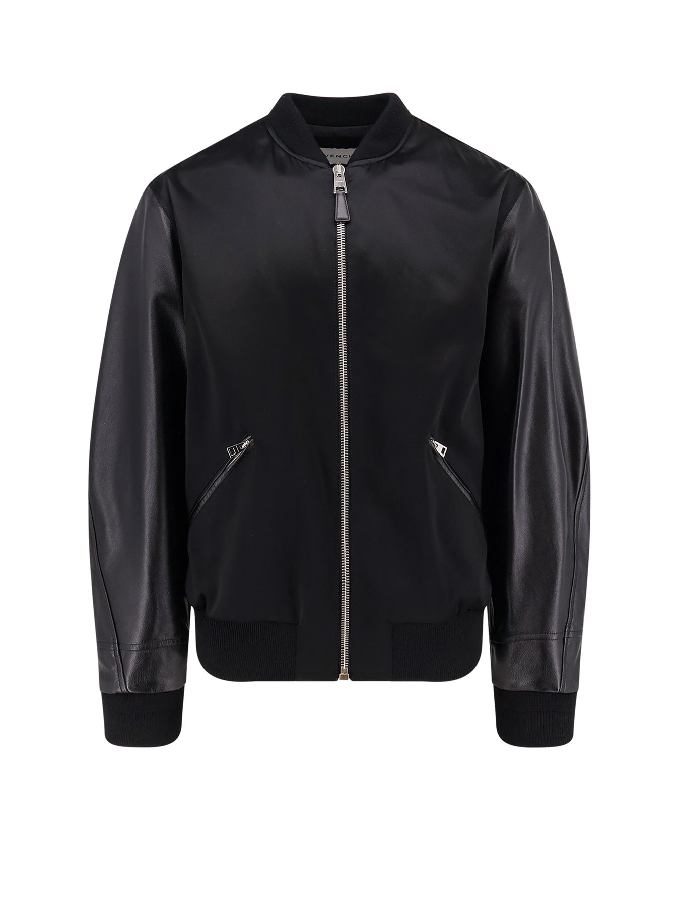 Zip closure Double front zip pocket Leather sleeve with cuff Ribbed profiles Made in Italy 53% cotton 47% acetate/ Leather Lining: 55% polyester 45% cotton SKU: BM01DZ6Y3Z075