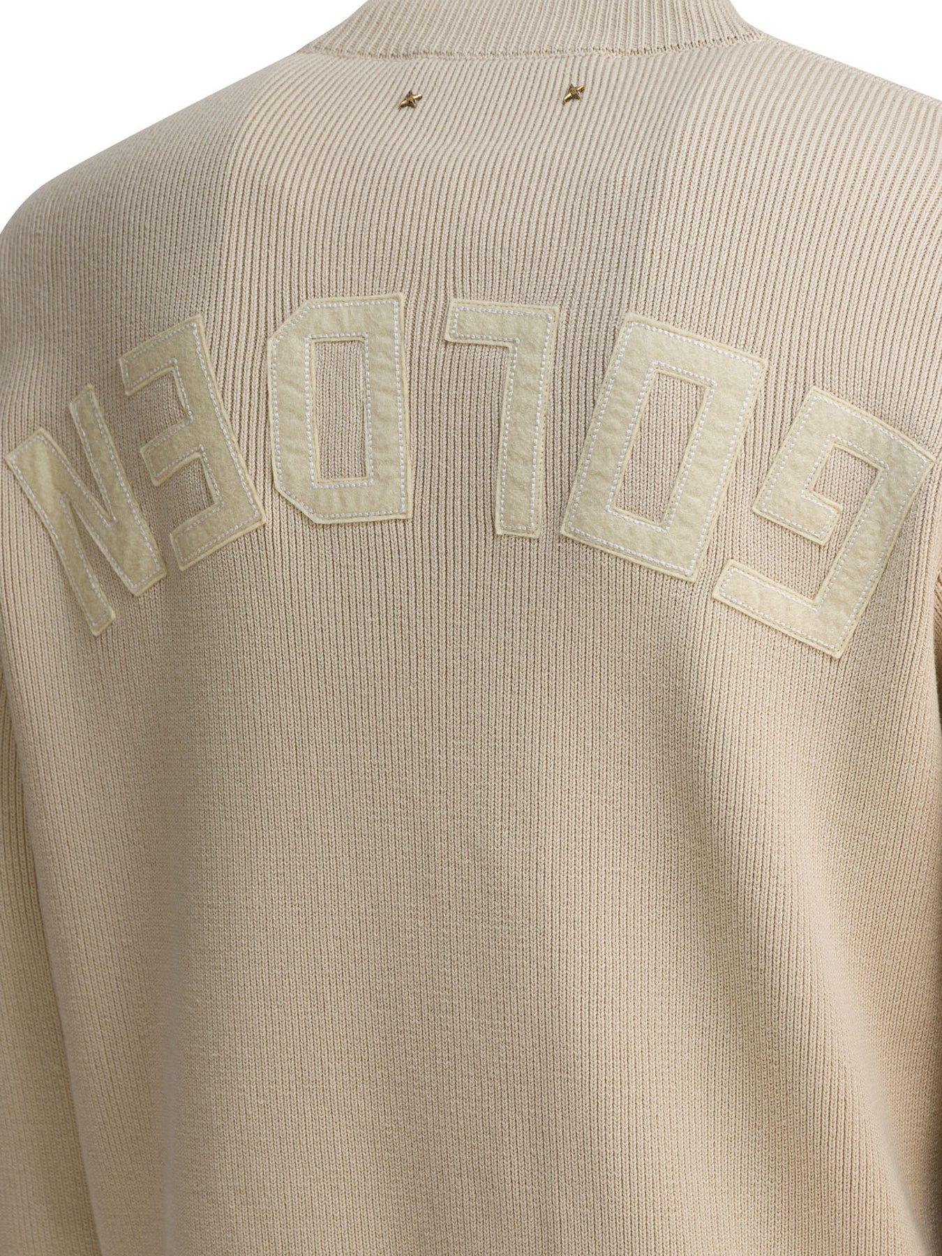 Golden Goose "Golden" crewneck sweater, made of organic cotton, features a compact knit structure and regular silhouette. The pattern is distinguished by a ribbed finish on the collar, cuffs and bottom. On the back is a reverse lettering, while the double star applique enriches the back of the garment with a recognizable detail. || - Double star logo on the back - Reverse 'Golden' lettering on the back - Crew neck - Long sleeves - Ribbed trim on collar, bottom and cuffs - Regular fit