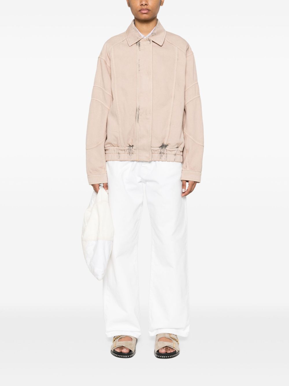 light beige front press-stud and zip fastening two side inset pockets press-stud fastening cuffs elasticated hem